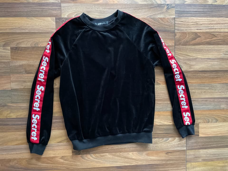 990. nabízím k prodeji tuto heboučkou (plyšový samet) mikinu s lemovkou na rukávech s nápisem Secret, vel S (je volná a klidně i více), FB Sister. Párkrát na sobě, bez vad krásná. Materiál měkoučký jako plyšový (vnitřní cedulka s materiálem škrábala ustřižena, materiál bude umělý).