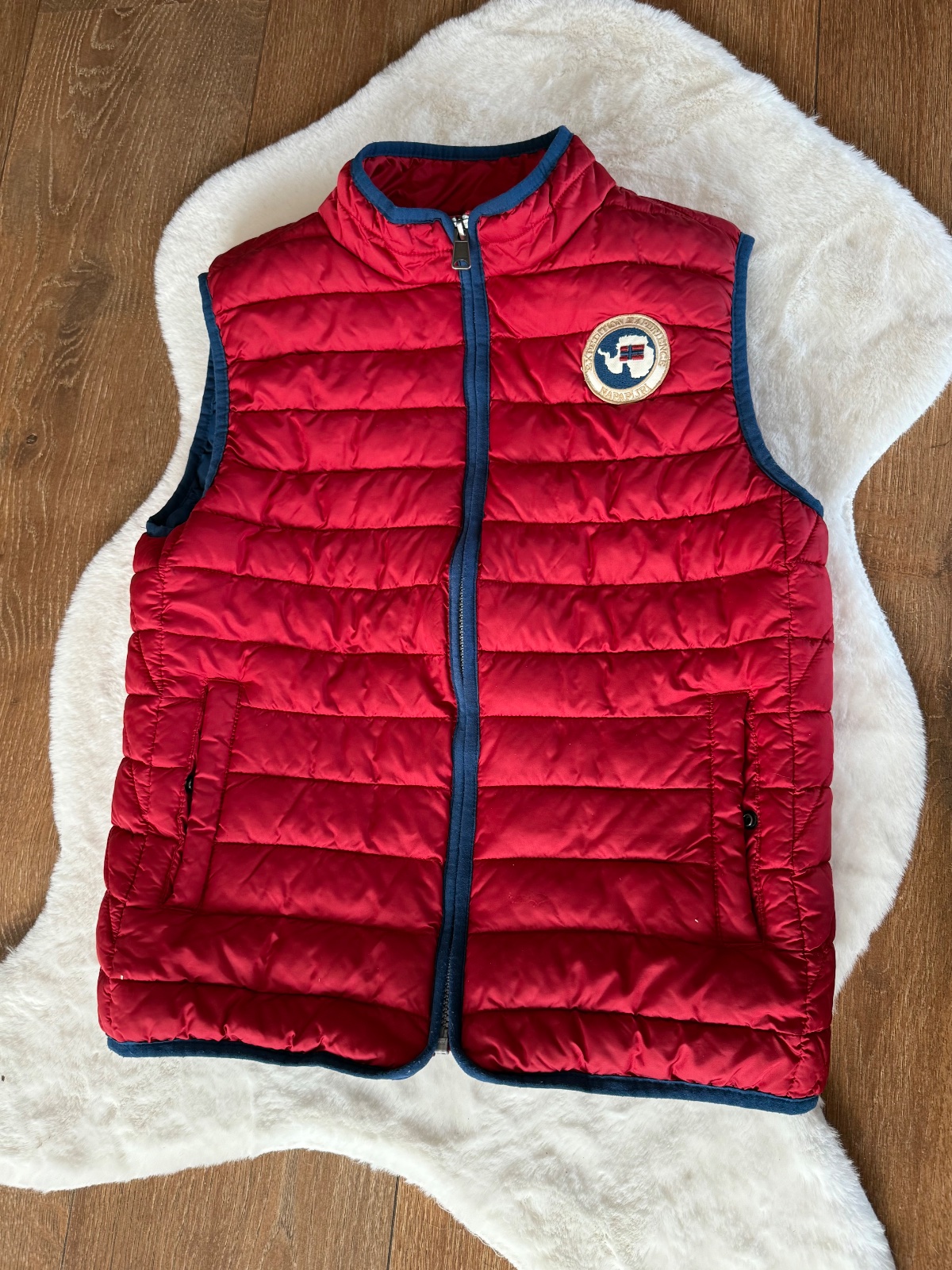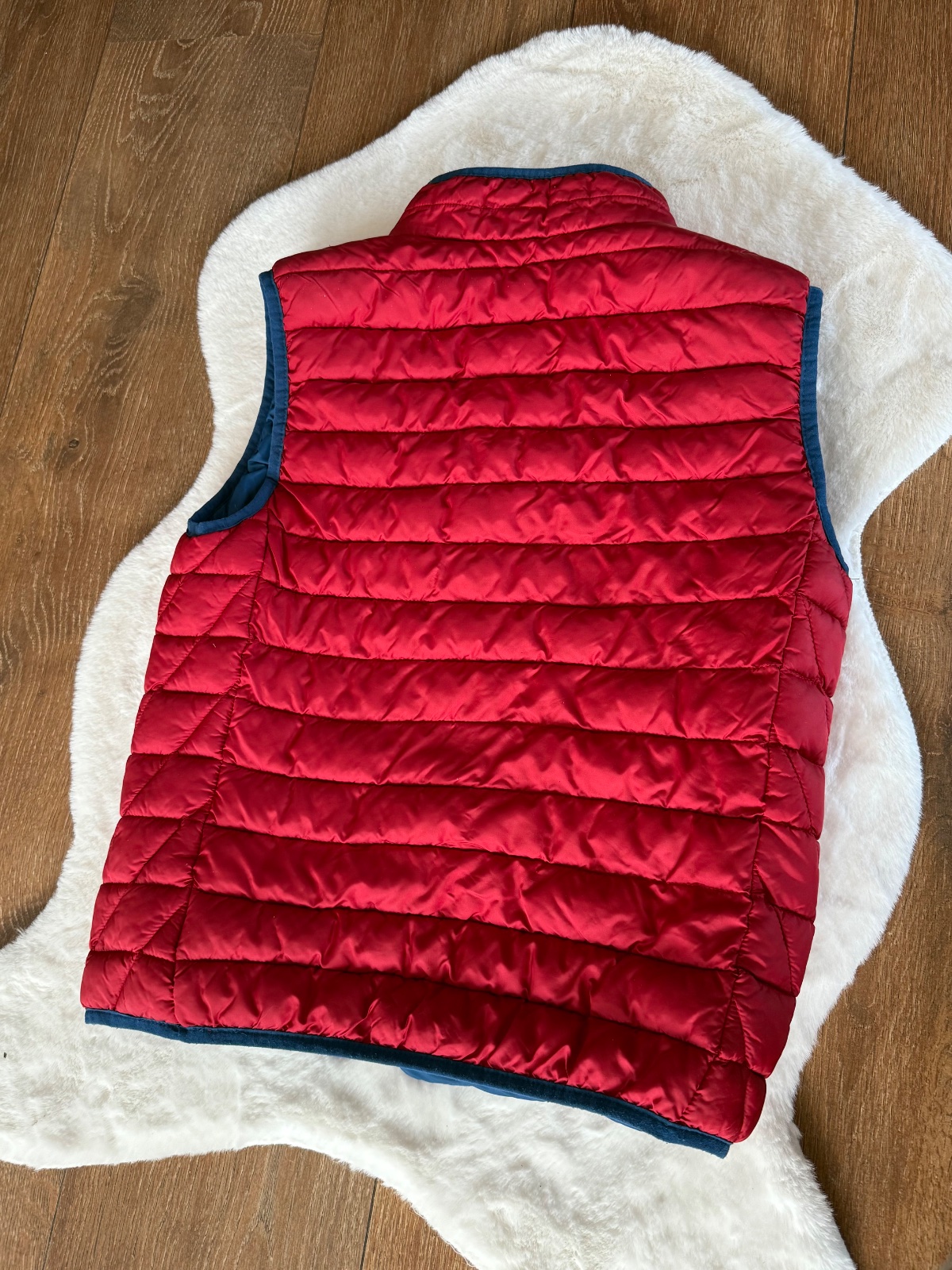Pěkná tm. červená lehká vesta, vel. 46 (XL)
