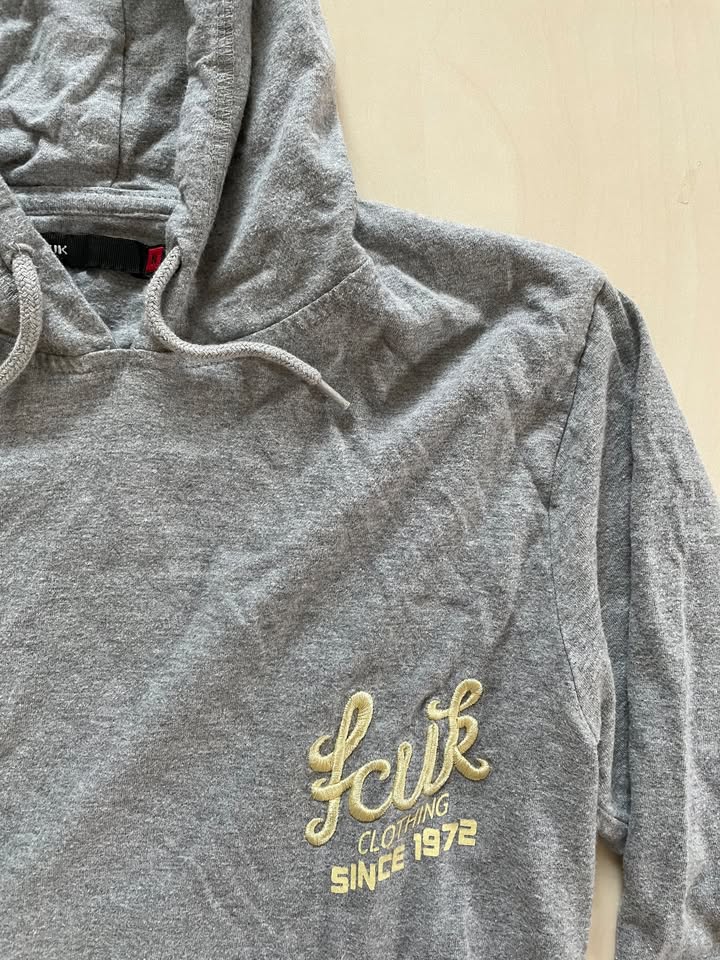 1848. nabízím k prodeji tuto šedou melírovanou mikinu, vel M, Fcuk,French Connection. Teplákovina tenčí jako u trik, 90% bavlna, 10% viscoza. Melírovaná s chloupkem. Na prsou nažehlený nápis výšivka. Nošená, bez vad jen má zblízka chloupek, ale ten k tomu patří, krásná
