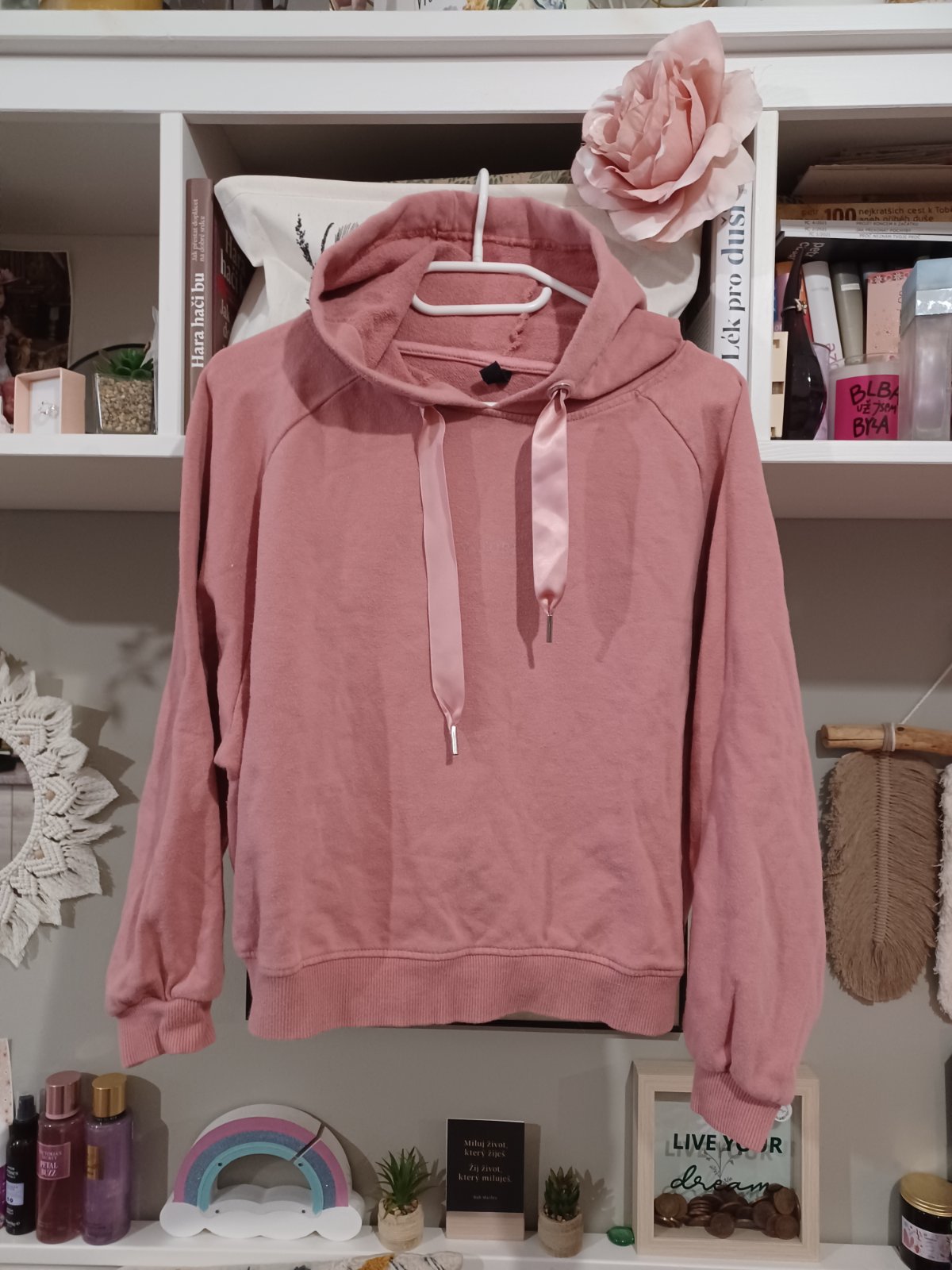 Starorůžová mikina s 3/4 rukávem 152-164, XS-S