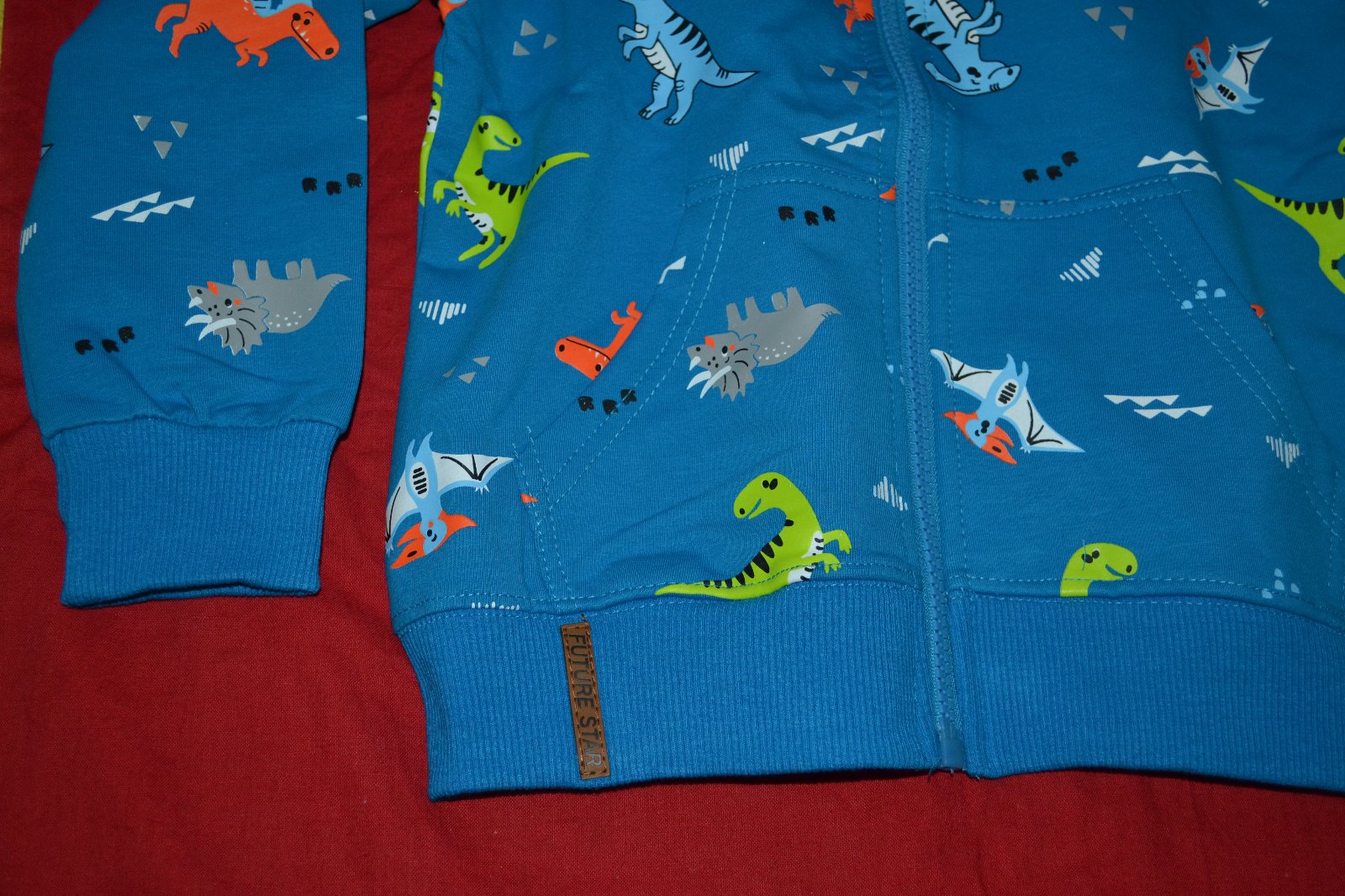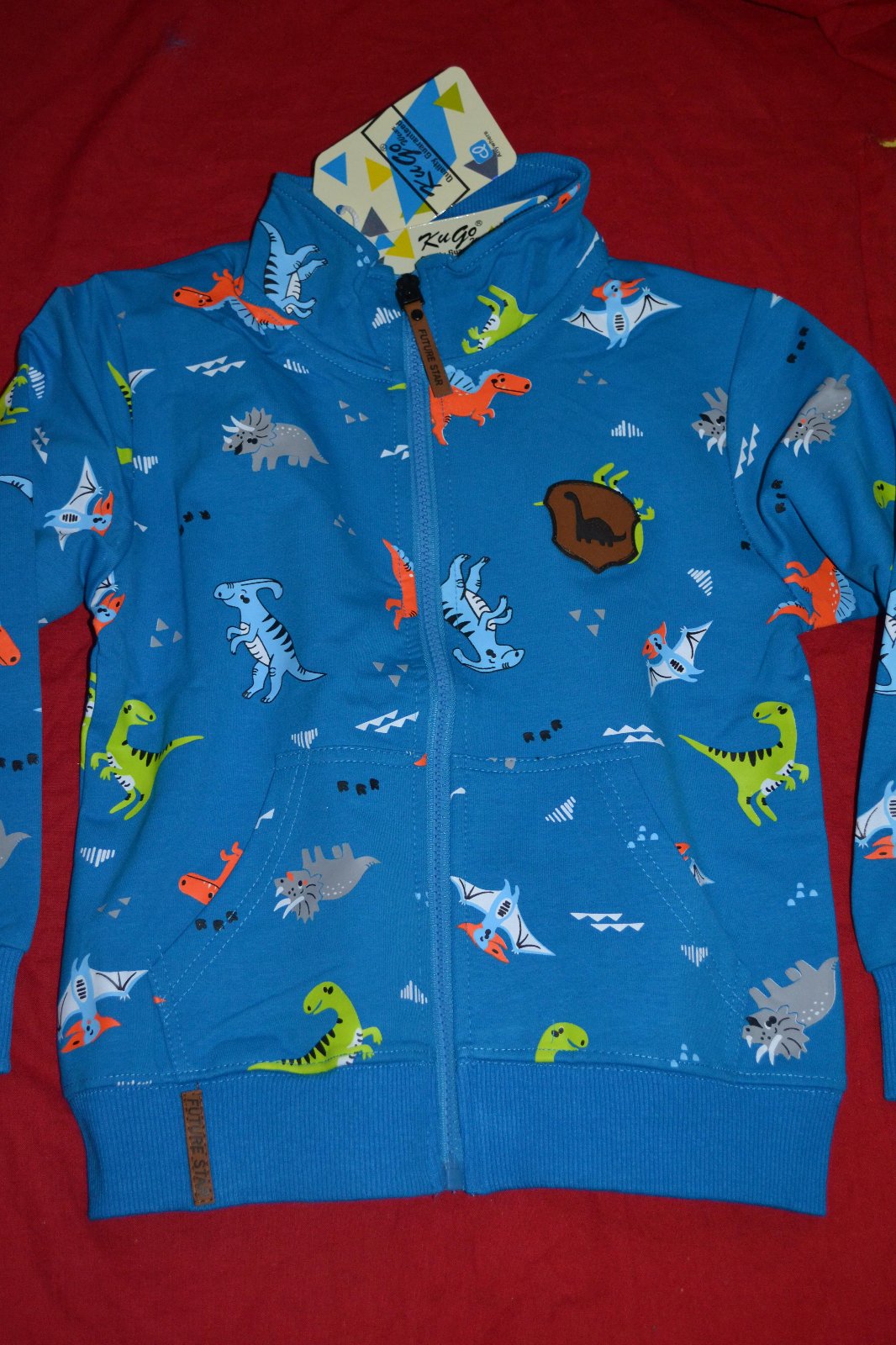 vkusná kvalitní mikina Kugo s dinosaury,moderní,bavlna, na zip,kapsy,krásně sedí,oblíbený motiv,výborný materiál,moc pěkné