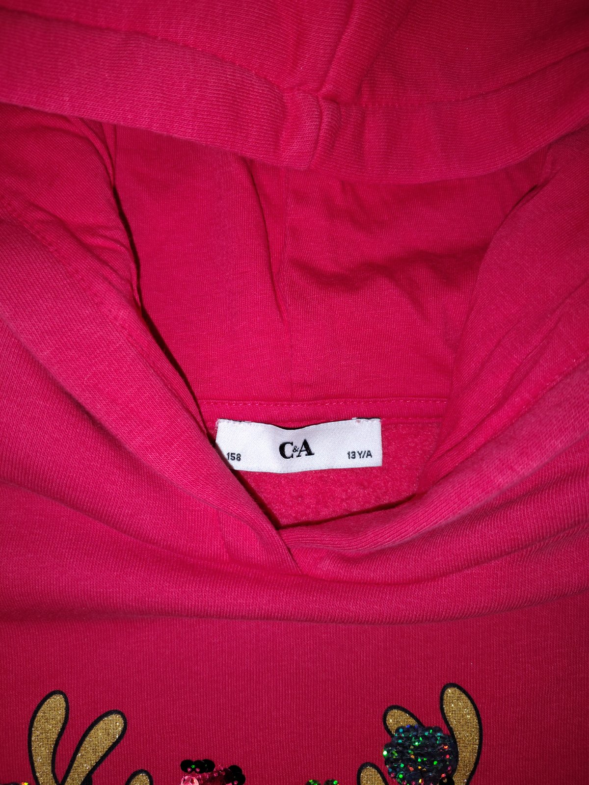 Dívčí mikina C&A 158 červená s vánočním motivem
