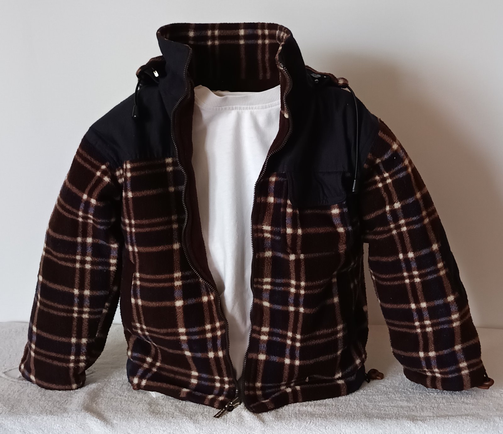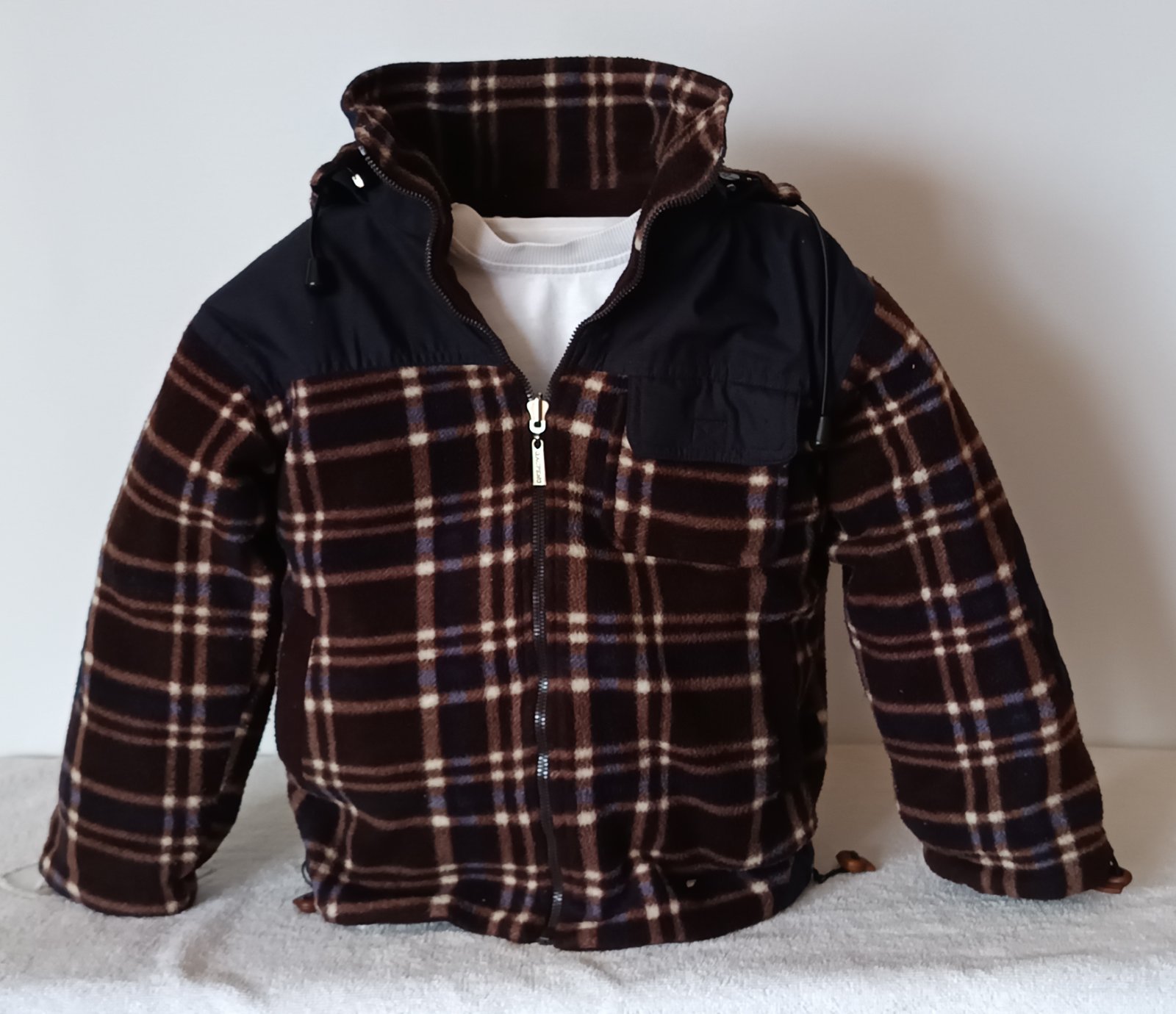 Prodám oboustrannou bundu s odepínací kapucí pro kluka 7 let.