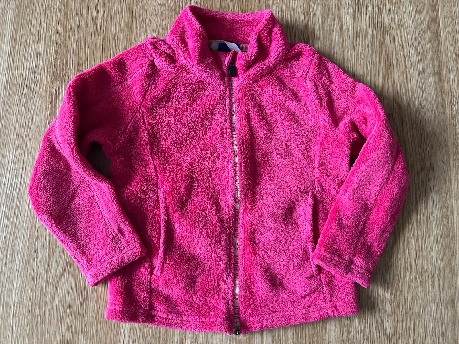 Nošená, prána mikina lupilu. Velmi teplá. Uvedená vel. 98/104, 2-4 roky. Lehký provozní žmolík viz. foto + může mít lehký flíček viz. foto. Zip je potřeba dobře zasunou.