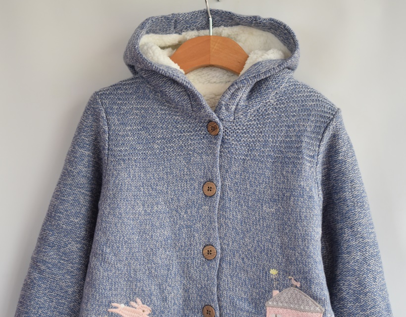 VELMI DOBRÝ STAV – oblečení nese známky nošení a praní, jako patrnější chloupek, mírně opraná barva, žmolík jen na lemech,