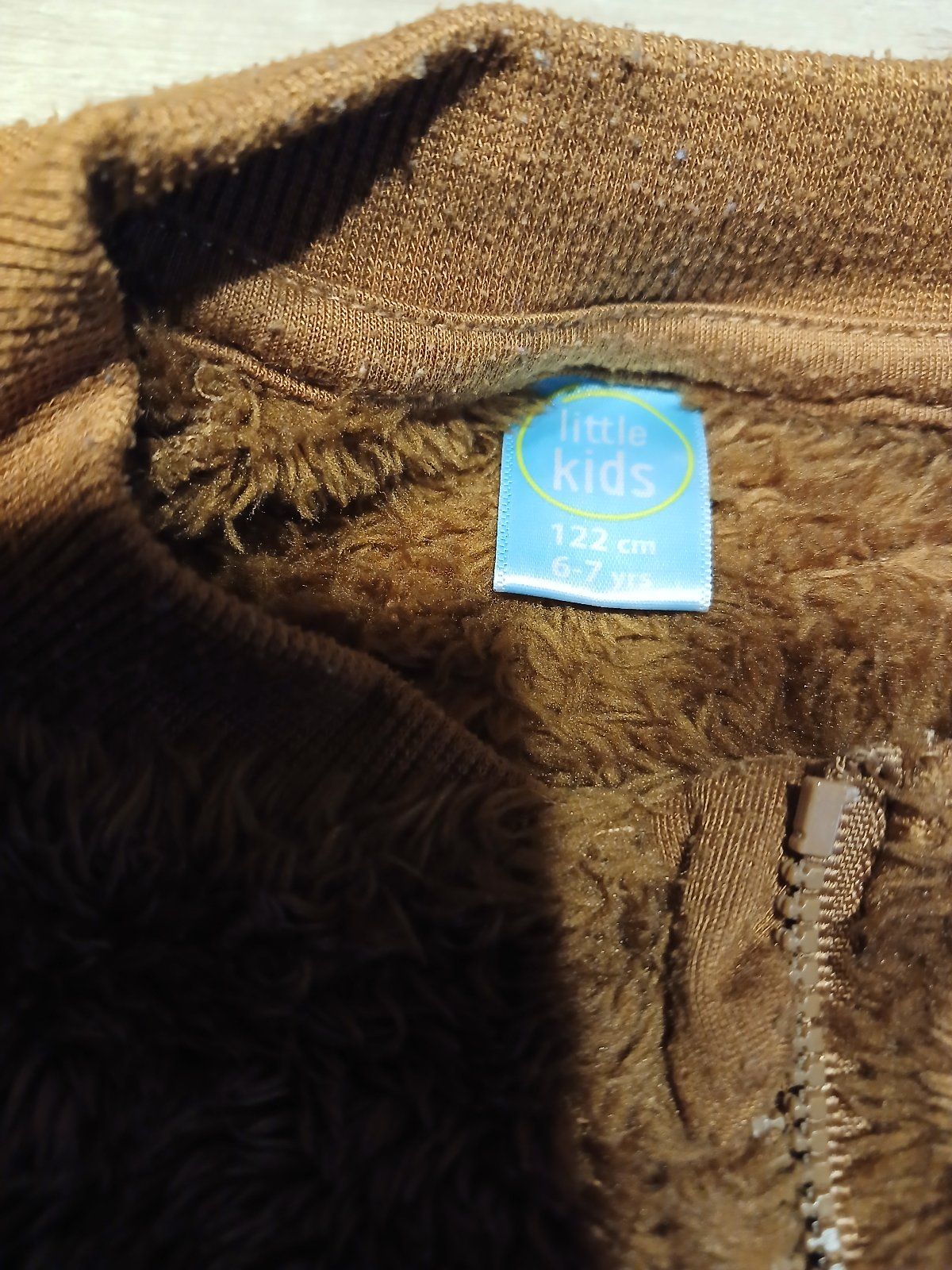 chlupatá mikina little kids, uvedená velikost neodpovídá, je menší, nositelná dříve, teplá, na zimu, trochu odřený jezdec, možný žmolík na nápletech, rozměry na fotkách