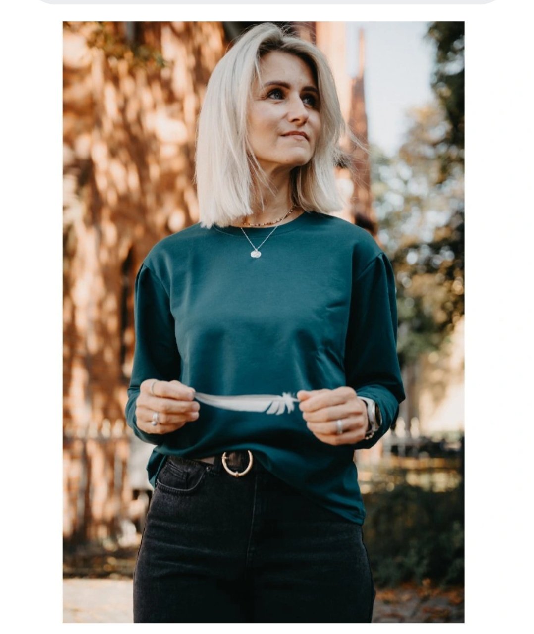 Ebba se hodí ke klasickým džínům, sukním nebo elegantnějším kalhotům. Řasení na rukávech dodává mikině pořádku šmrnc, aniž by působila příliš formálně.