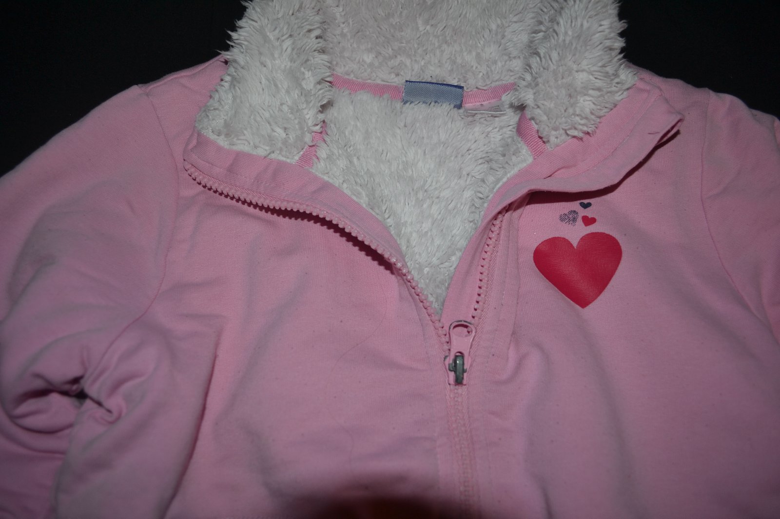 oteplená praktická dívčí mikina v.110/116, na zip, nošená,měkká, s kožíškem