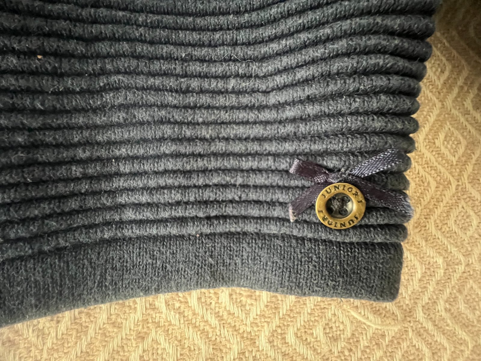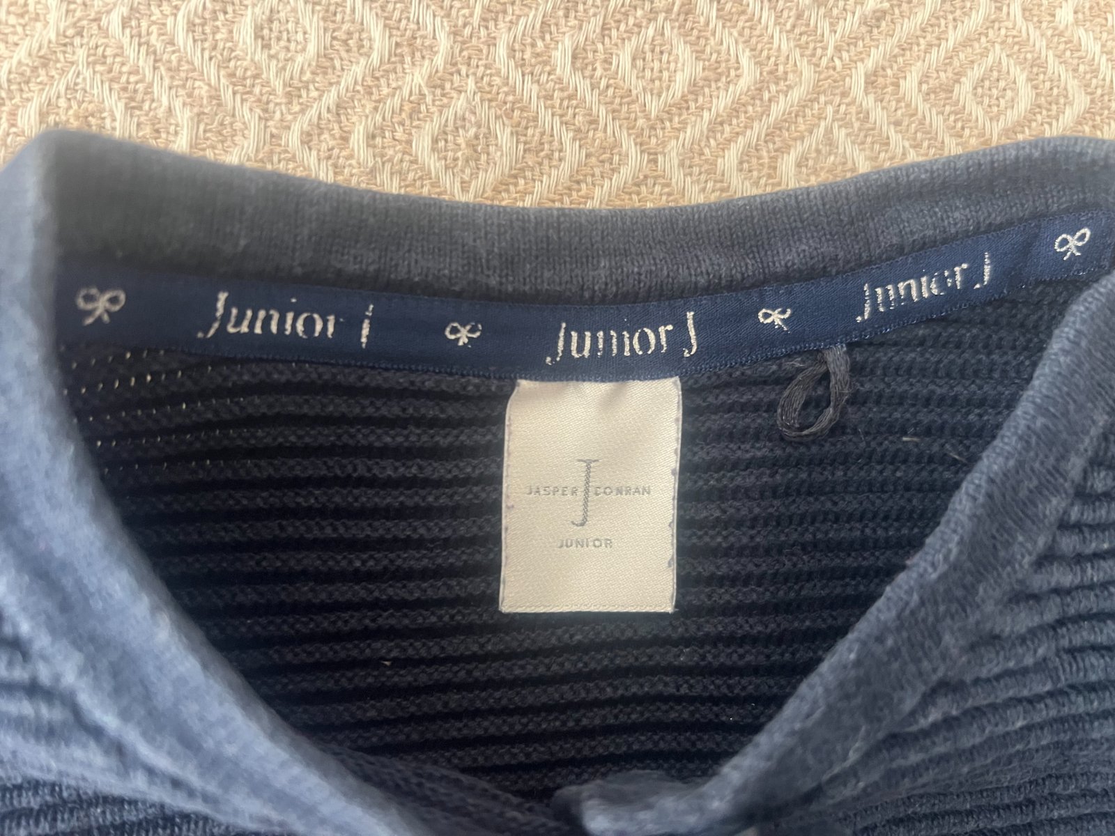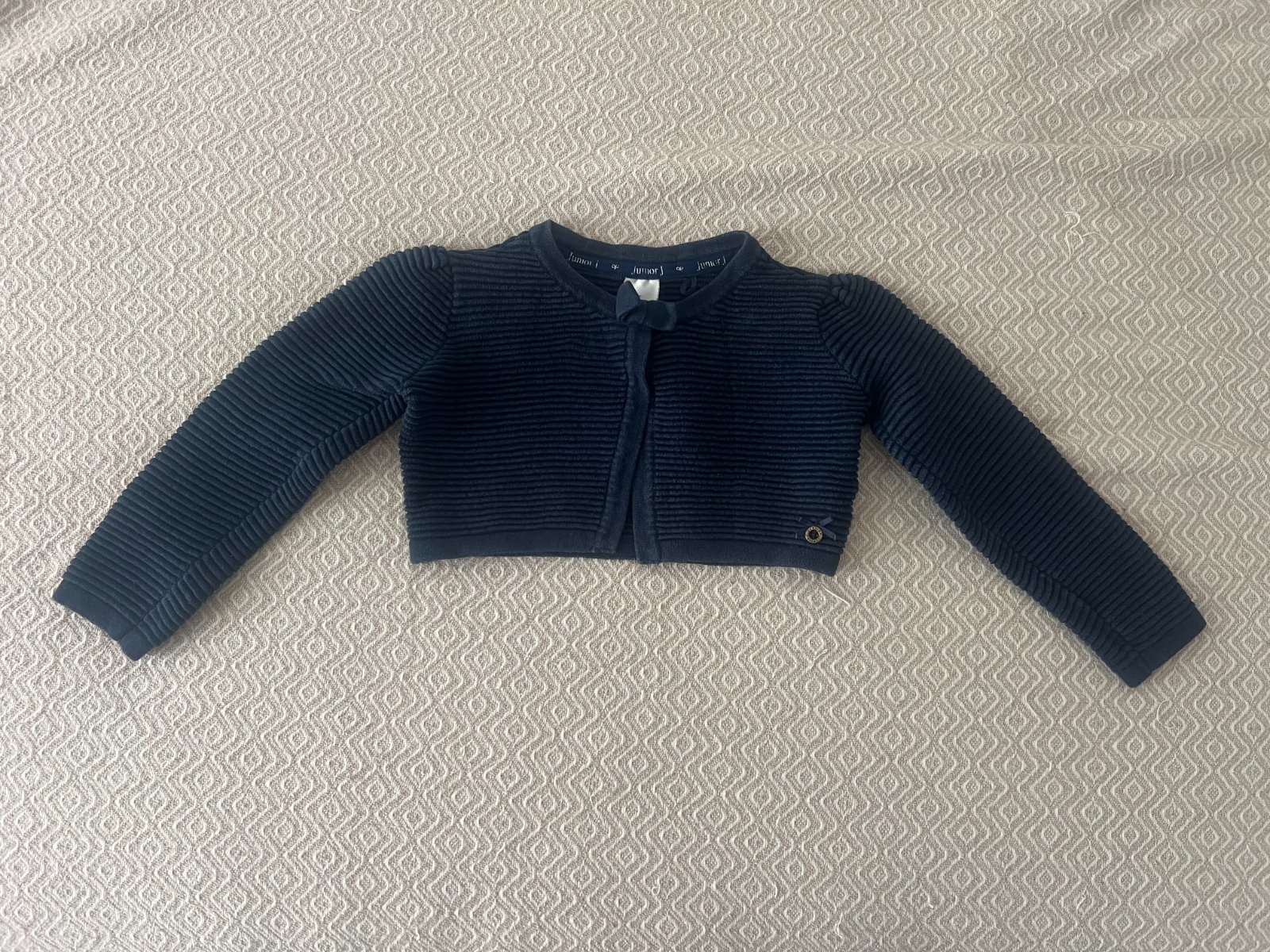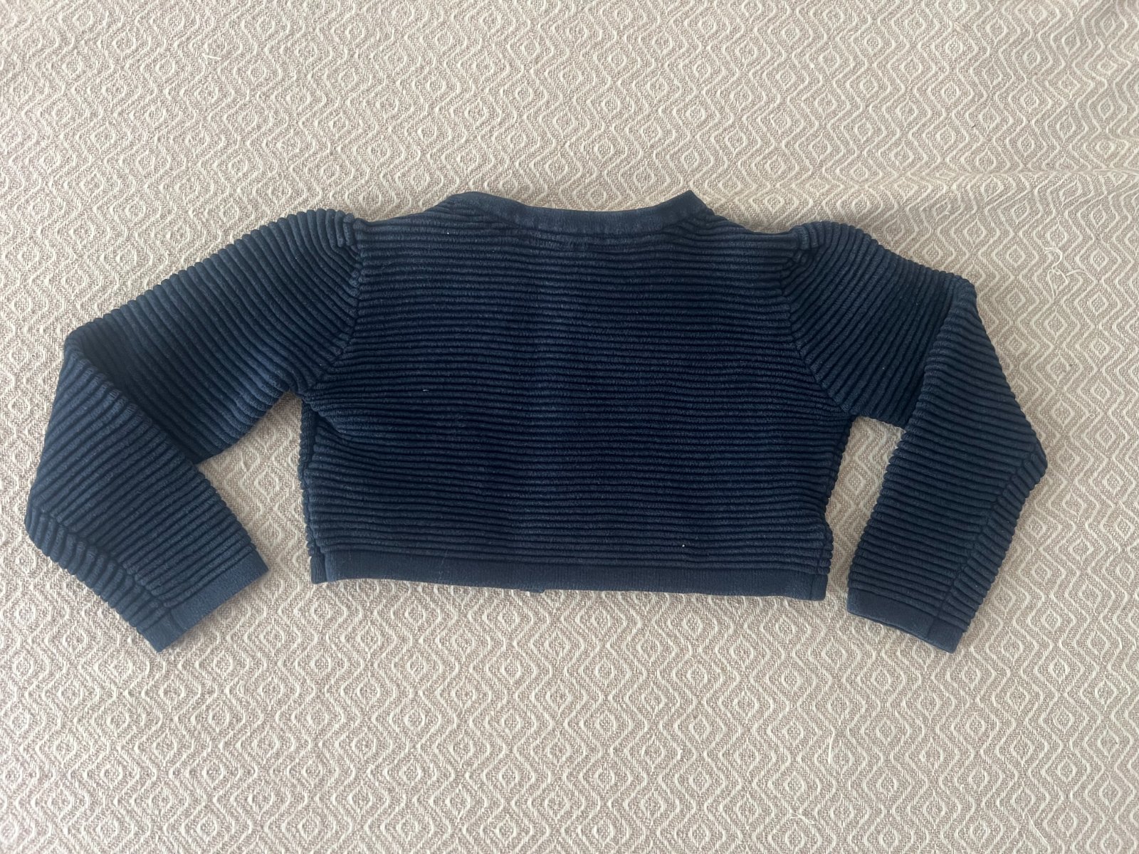Tmavomodré žebrované svetrové bolerko Jasper Conran. Trochu sepranější. 100% bavlna.
