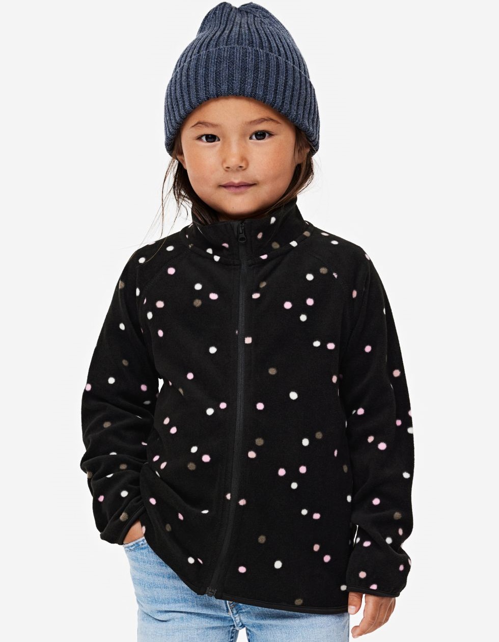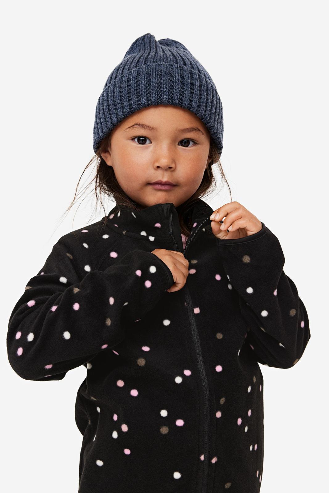 Krásná fleecová holčičí mikina H&M - tmavá s puntíky.
