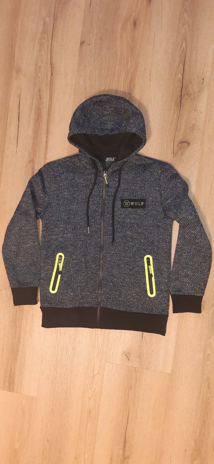 Kvalitní dětská zateplená propínací mikina WOLF 152 kapucí na zip. Kapuce podšitá černou látkou. Po straně jsou dvě kapsy, zevnitř je zateplená měkoučkým chloupkem.