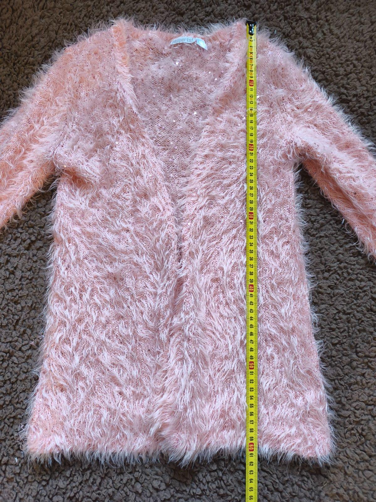 Třpytivý růžový kardigan s flitry 146-164 / XS
