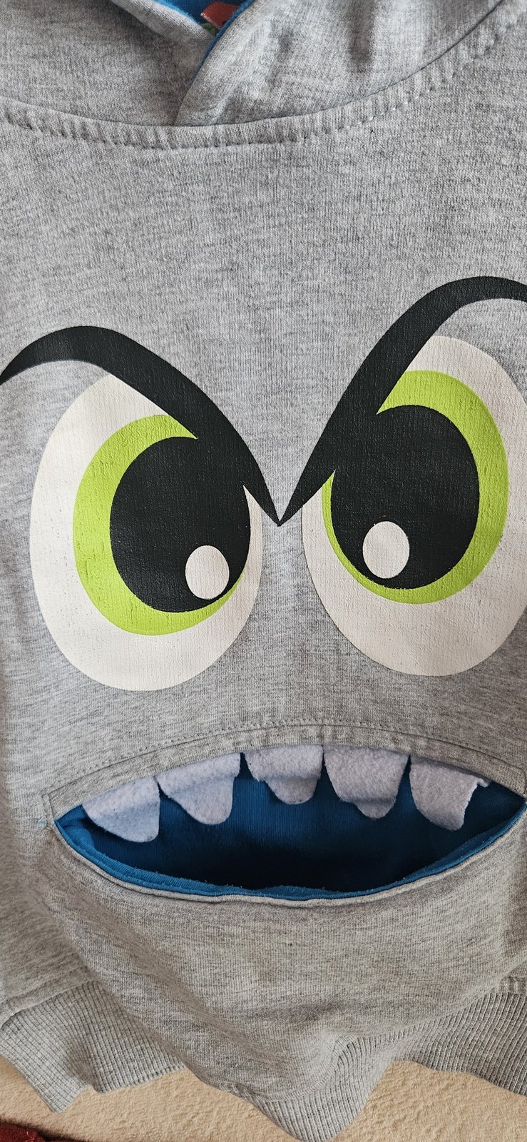 Šedá s kapucí, přes hlavu, s očima a pusou, vel.104, zn.Kiki&Koko