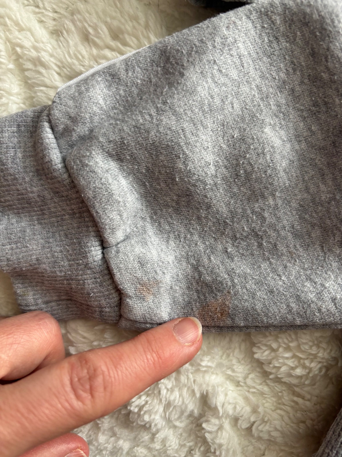 DOBRÝ STAV - žmolíky na lemech, spíš na donošení, na doma, výrznější žmolík....u takovéto stavu oblečeni je vždy zohlednění v ceně .
