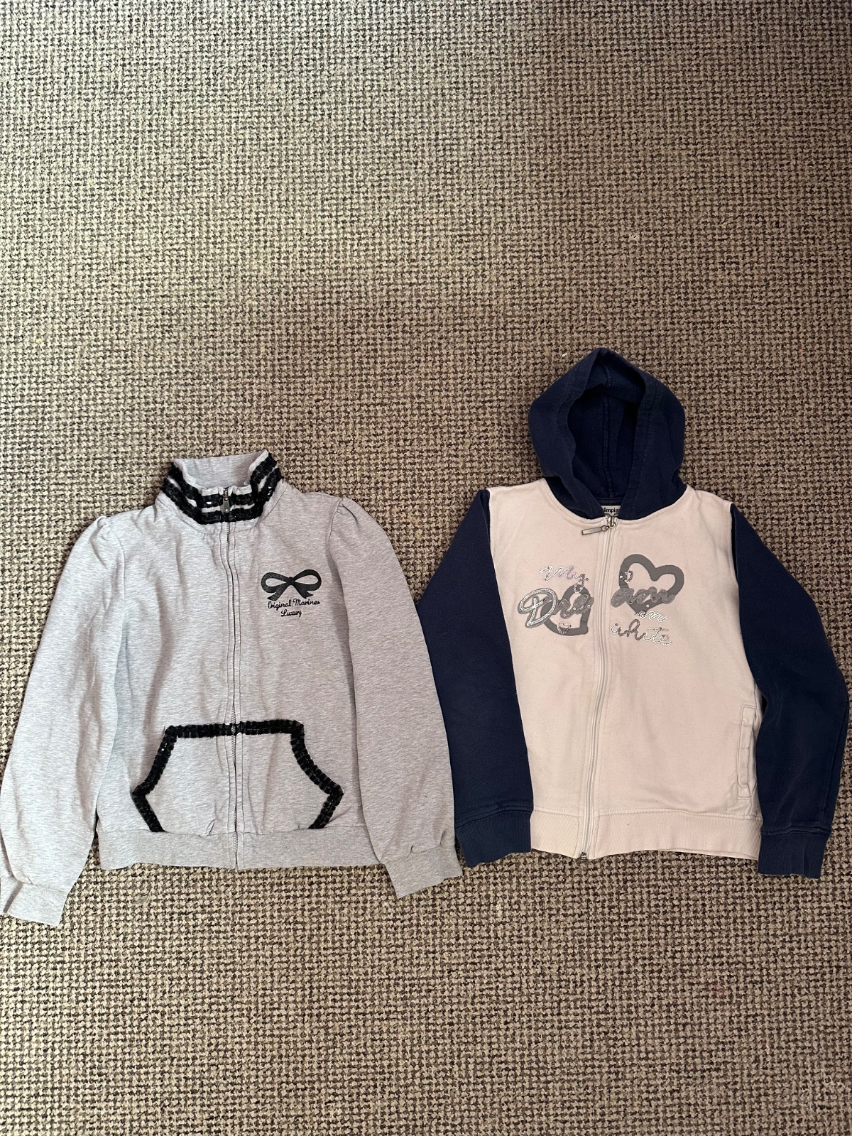 2 kusy dívčích mikin v pěkném stavu bílá už není zářící bez fleků