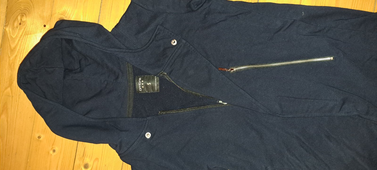 SUPER STAV - NOŠENÍ NENÍ SKORO ZNÁT. KRÁSNÁ MODRÁ BARVIČKA A ČERNÉ PRVKY. KAPUCKA PODŠITÁ BAVLNOU. NA ZIP. KAPUCKA MÁ TKANIČKY. UVNITŘ MIKINY CHLOUPEK - TEPLEJŠÍ. VPŘEDU KLOKANÍ KAPSA. MATERIÁL VEL...