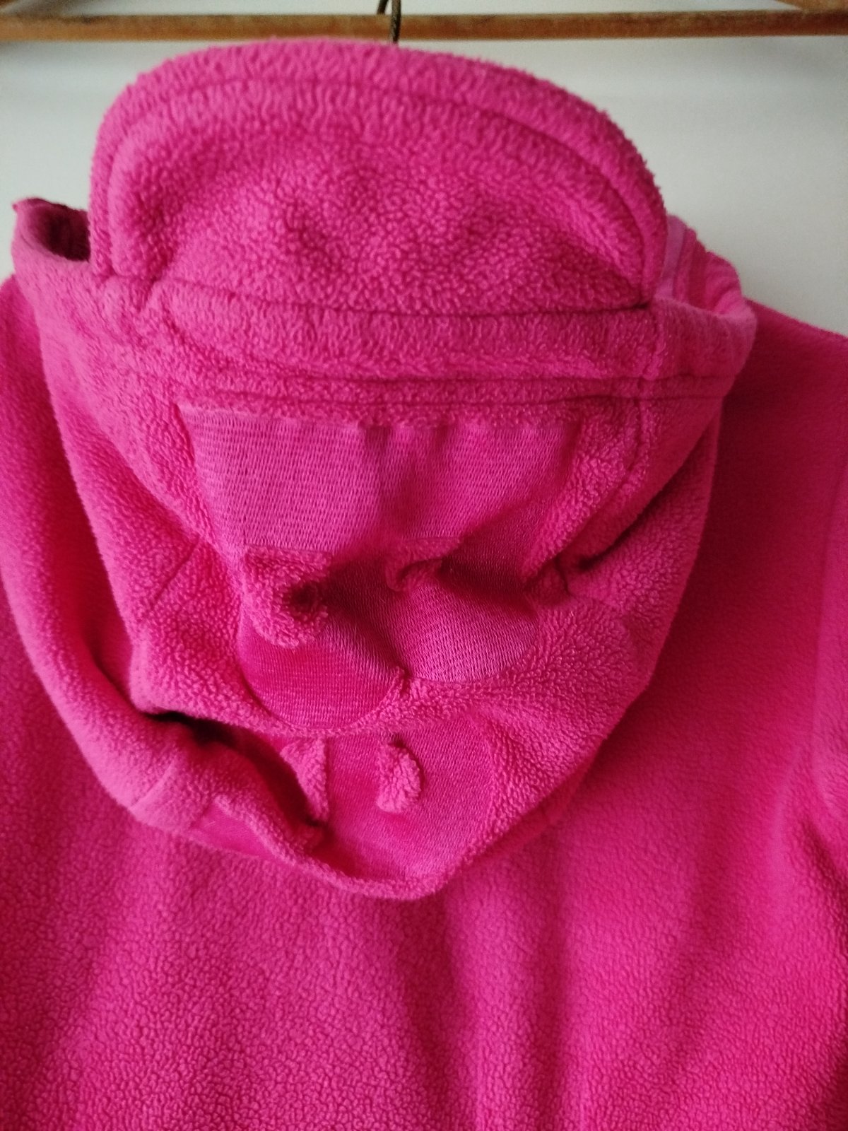 Délka 56cm, šířka 39cm, jediná vada na rukávu viz poslední foto jinak nezničená, na kapuci má kšilt, nošená krátce, je teplá
