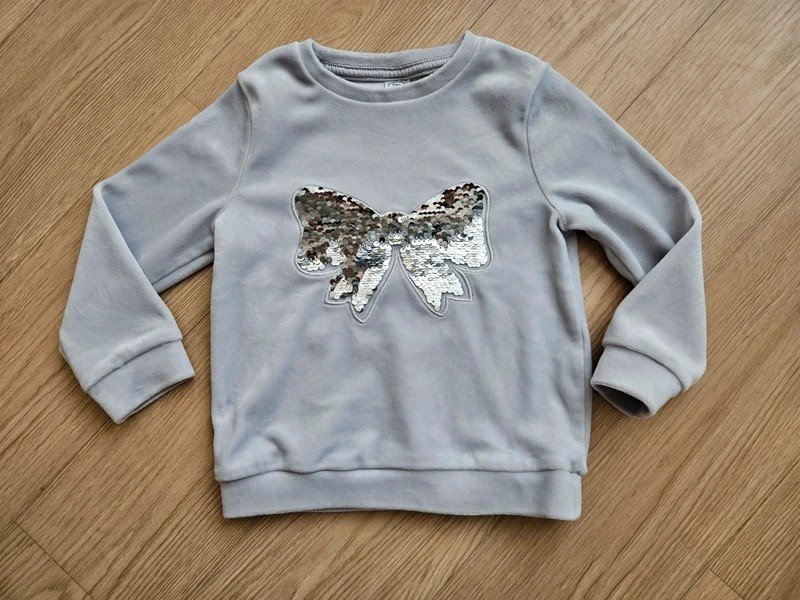 Tenká mikina, je z Pepca, velikost 104, moc hezká, příjemný měkoučký materiál, mašlička z flitrů, bez vady, krásný stav