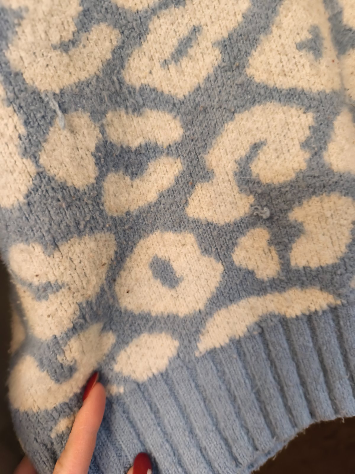 Pružný svetr a leopardím vzorem, cedulka ustřižená, nošen při 146-158 nebo na XS/S s kratšími rukávy. Známky praní, zatrhlé nitky a žmolky.