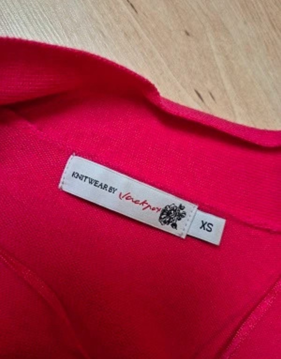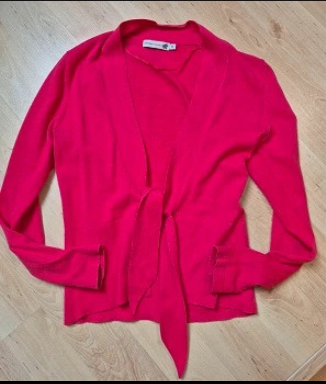 Svetřík- bolerko v krásně jasné magenta růžové. Vypadá dle cedulek nový. Příjemná bavlněná příze. Délka 55cm,prsa od max. 90cm. Rameno 10 + 60cm mají rukávy. Psaná vel.XS ale je trochu větší a myslím že sedne na S - Mko - prosím měřte..