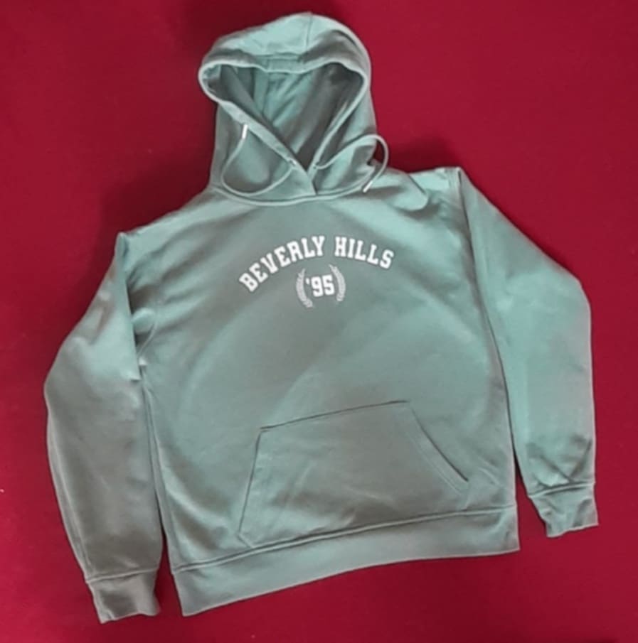 Prodloužená mikina , nošená , jedna dírka v rantlu dole , vybledlá barva , klokánková kapsa, kapuce , délka 74 cm , délka rukávu 61 cm , šířka pod průramky 49 cm