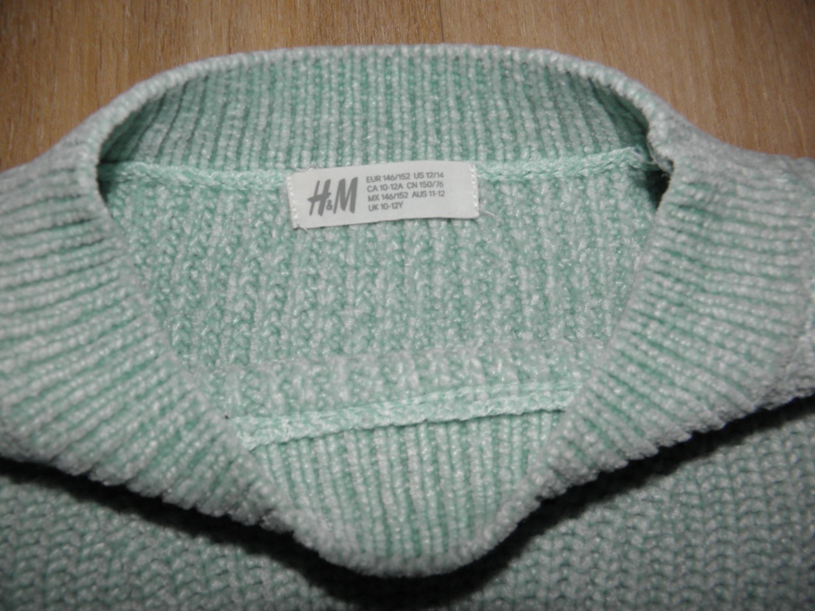 Dívčí žinylkový mint svetr zn. H&M vel.146/152