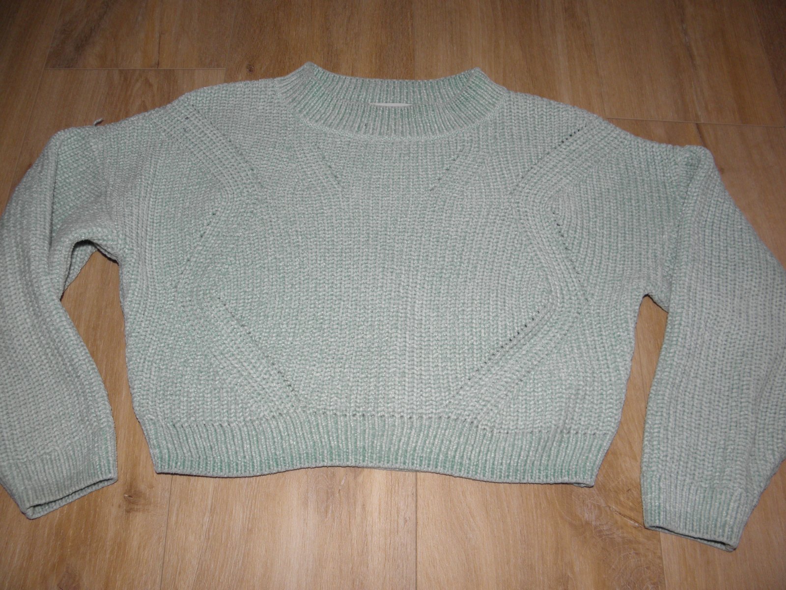 Prodám dívčí žinylkový svetr zn. H&M vel.146/152. Nošený málo, bez vad, materiál krásně jemný, nadýchaný. Moderní kratší střih. Barva se mi nedařila vyfotit, nejvíce odpovídá poslední fotce, ale ve skutečnosti je více do teplejší zelené mint.