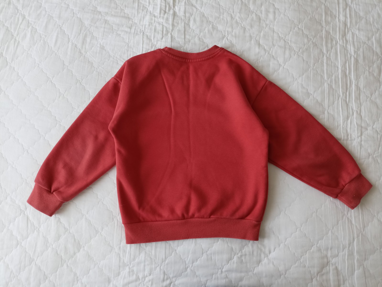 Materiál 100% bavlna, uvnitř zateplená fleecem. Rukáv a spodní část ukončena manžetou. Oblékání přes hlavu.
