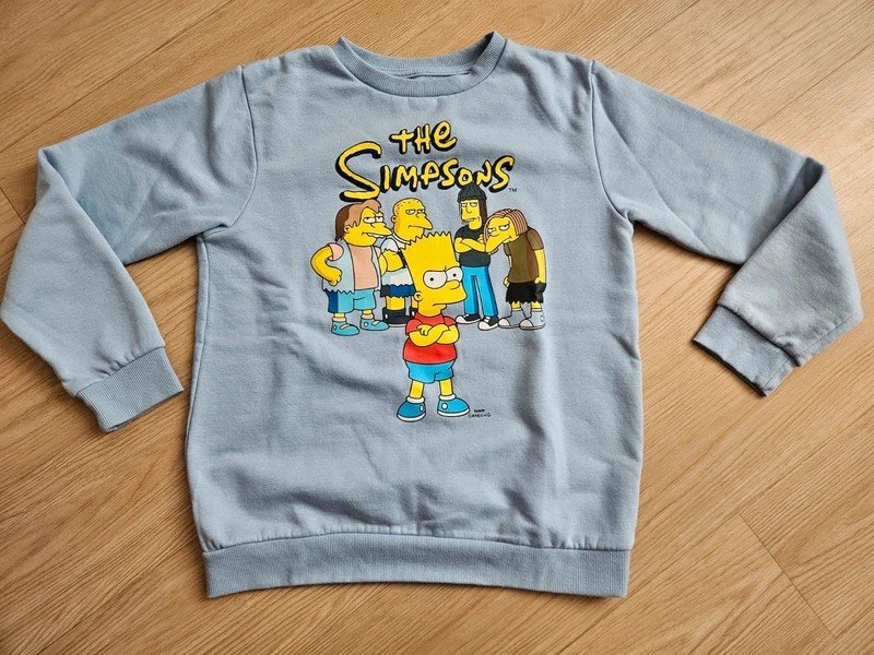 Mikina kupovaná nová, značka Primark, motiv Simpsnovi, nošená krátce, syn rychle vyrostl, krásný stav, uvnitř chloupek, velikost 152