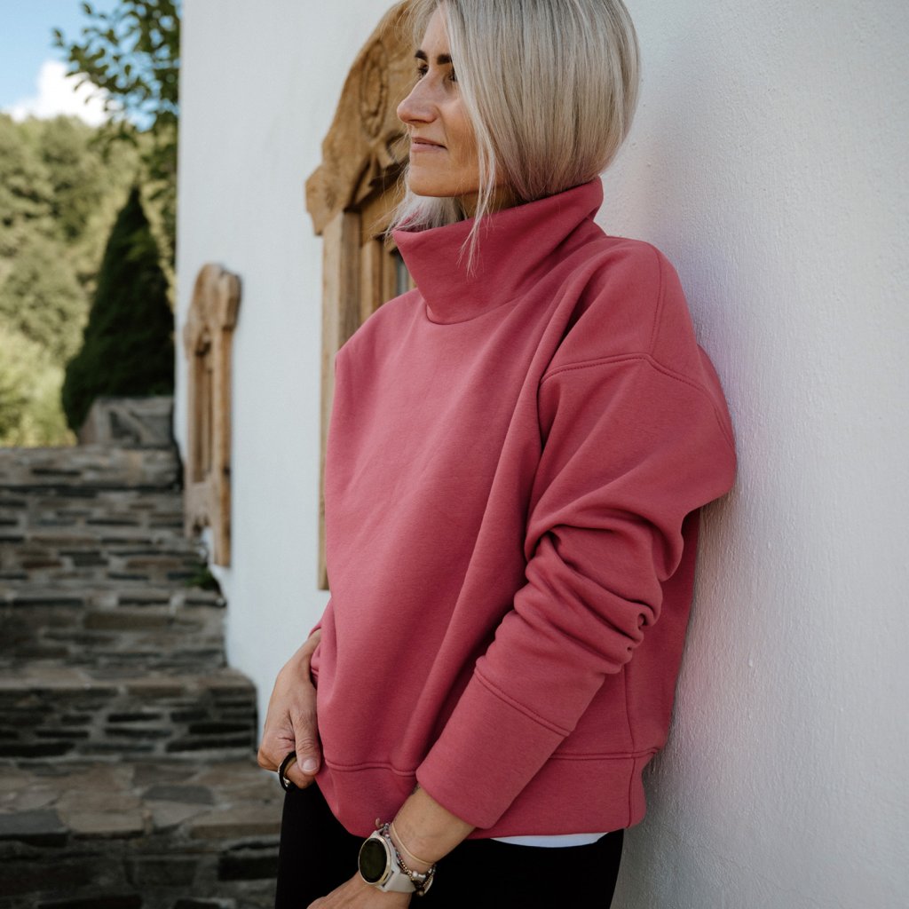 Úplet je pružný, z rubu chloupek, ve složení 70% bavlna, 30% PES., délka 66cm, šíře průramky 56cm.