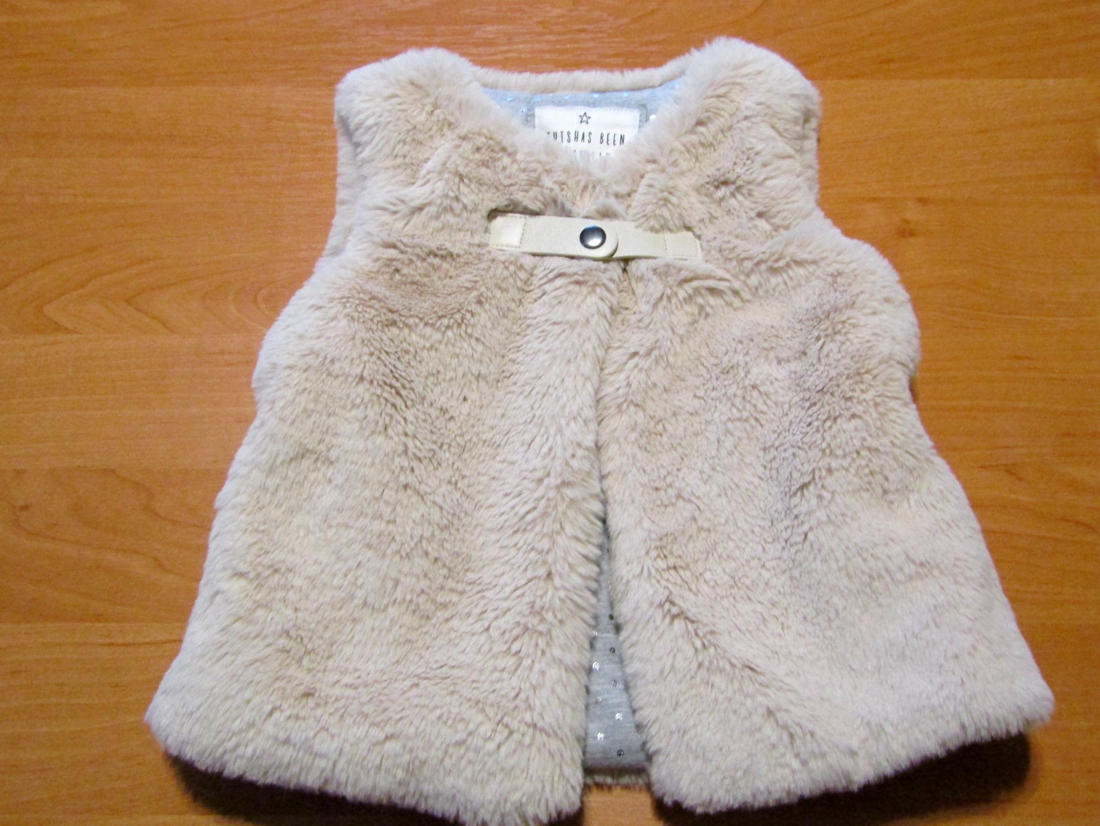 Dívčí vesta s chlupatým ukončením , uvnitř chlup není.Vesta je na zip s kytičkovými výšivkami. Nošená párkrát,vypraná. Bez vad. d-41 cm š-33 cm