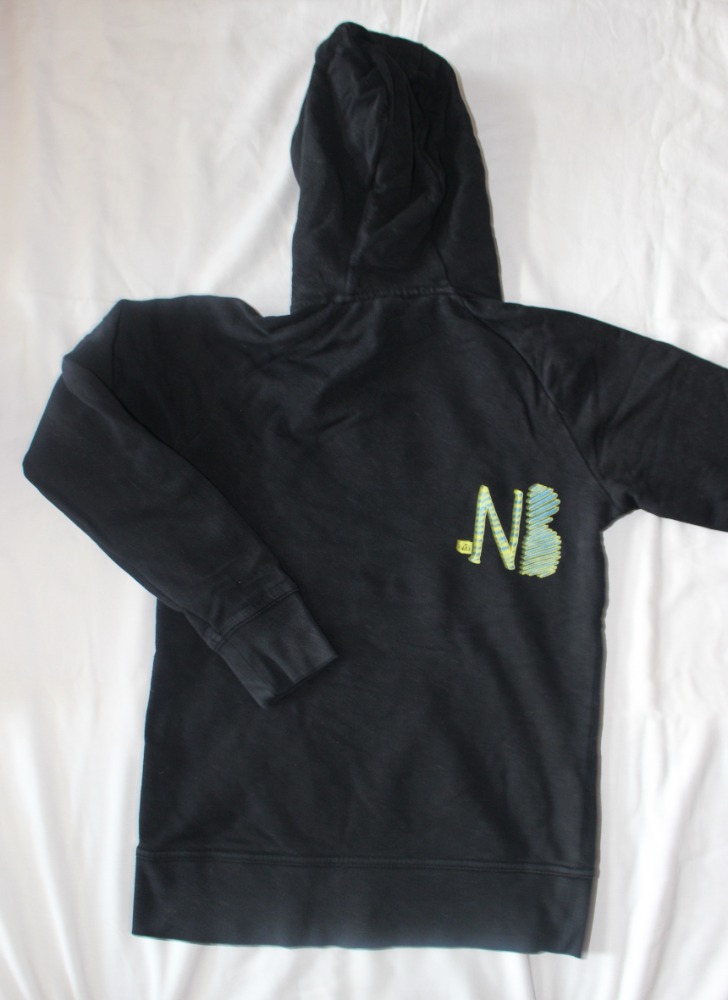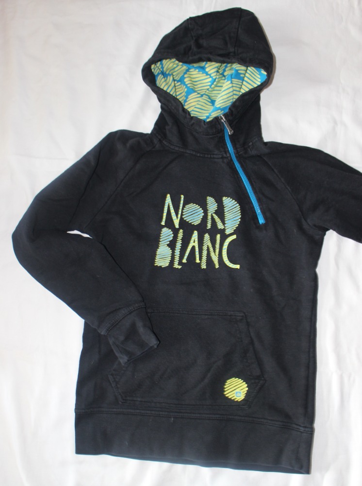 Vyřazeno z přeplněného šatníku naší Ami, ve velmi dobrém stavu, dlouhá, málo nošena, černá s fosforeskujícími nápisy (i na zádech) a vnitřkem kapuce, kapsa klokanka, zajímavé-nápadité řešení modrého uzávěru-šikmé.