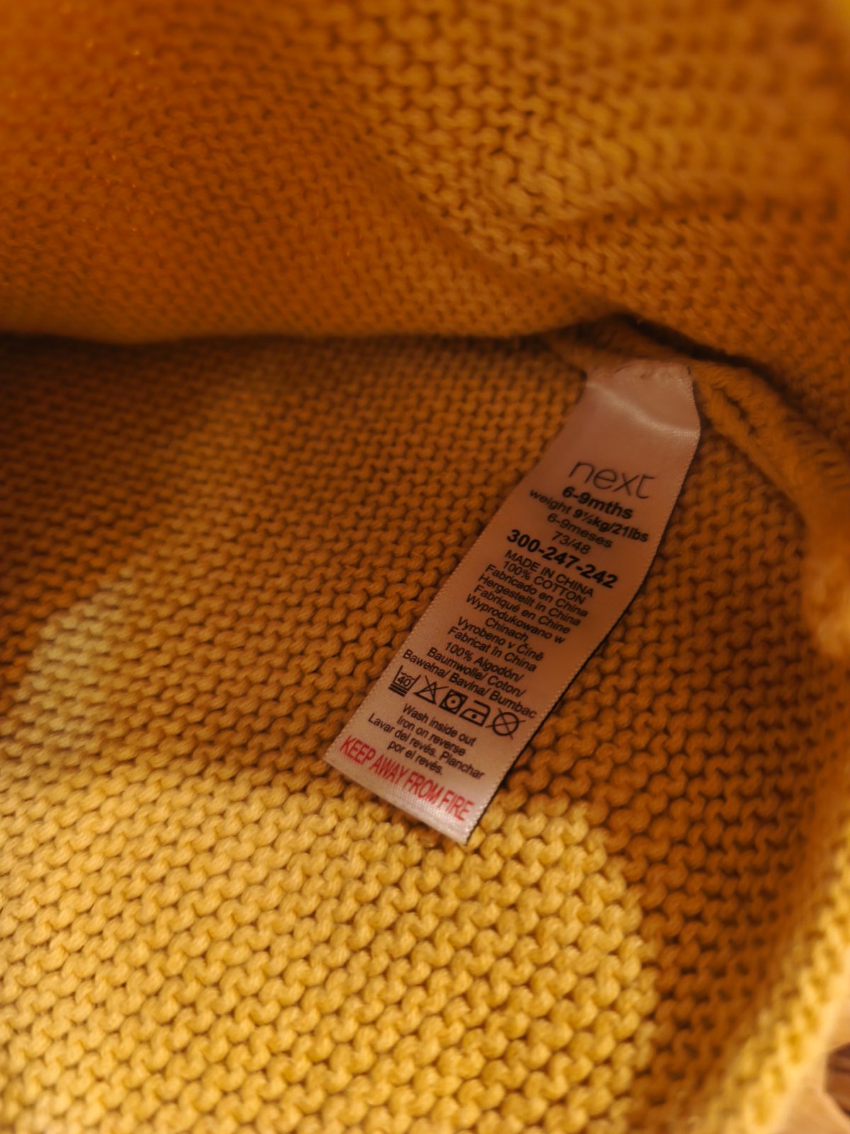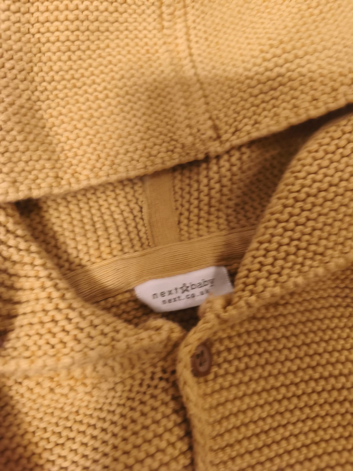 Pletený svetřík světlejší hořčicové barvy, vel 74, sedí i 80. 100% bavlna.