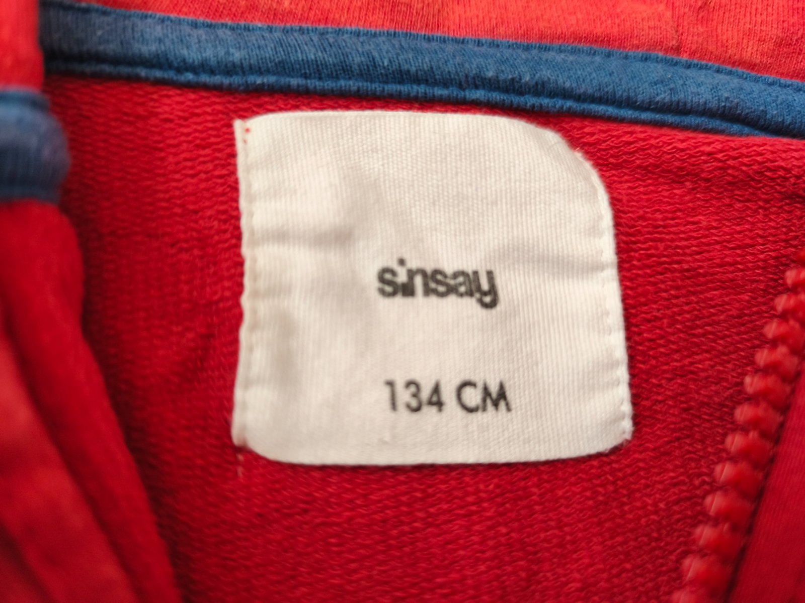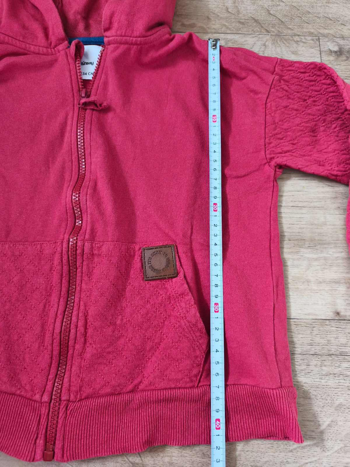 Mikina na zip, s kapucí. Velikost 134 - rozměry na fotkách. Nošená minimálně - pro nás trochu moc široká.