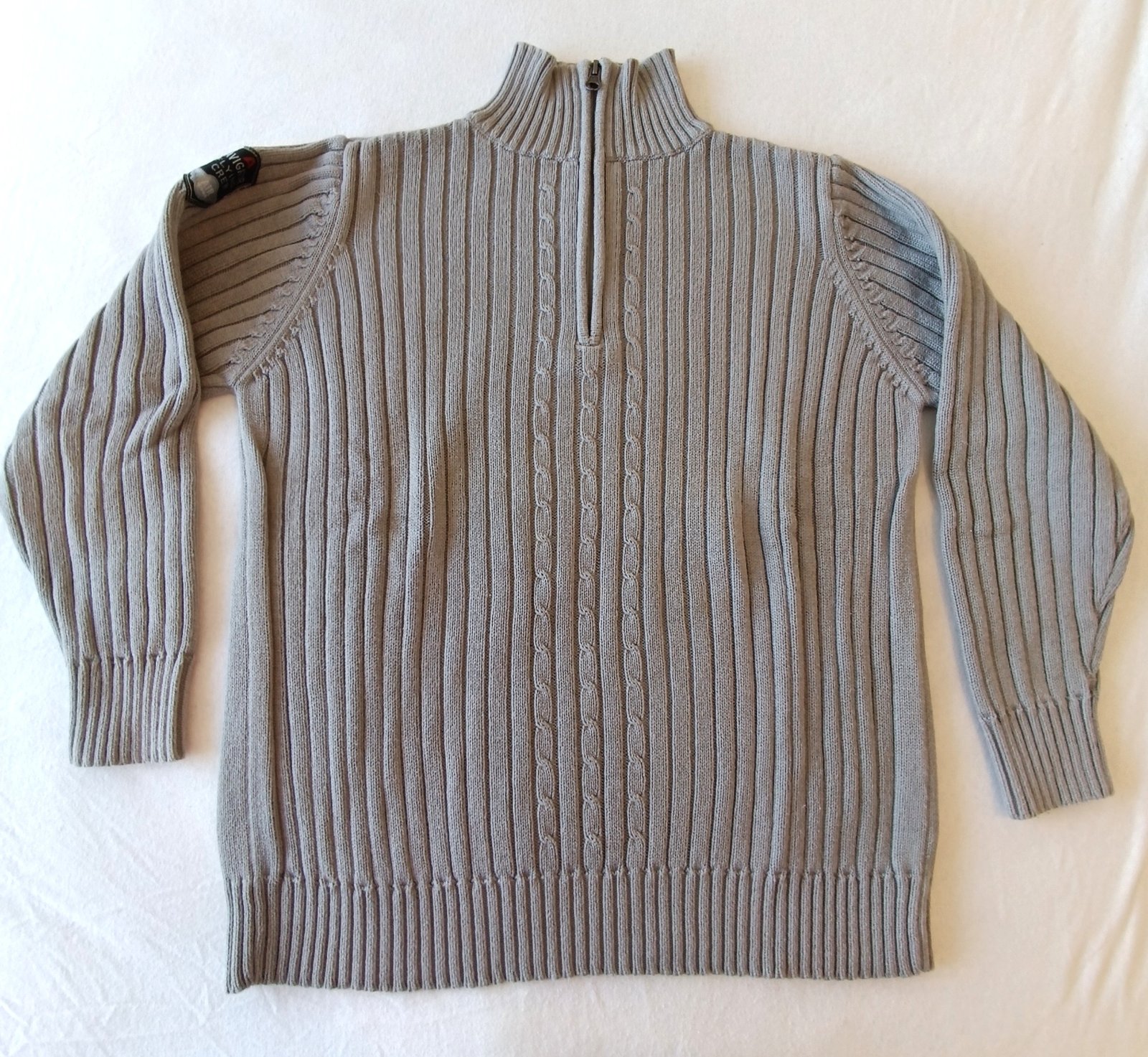 Šedý pletený pulóver, zn. Tchibo, velk.146/152, na zip, dĺžka - 56cm, rukávy (od krku) - 59cm, 100% bavlna. V super stave.