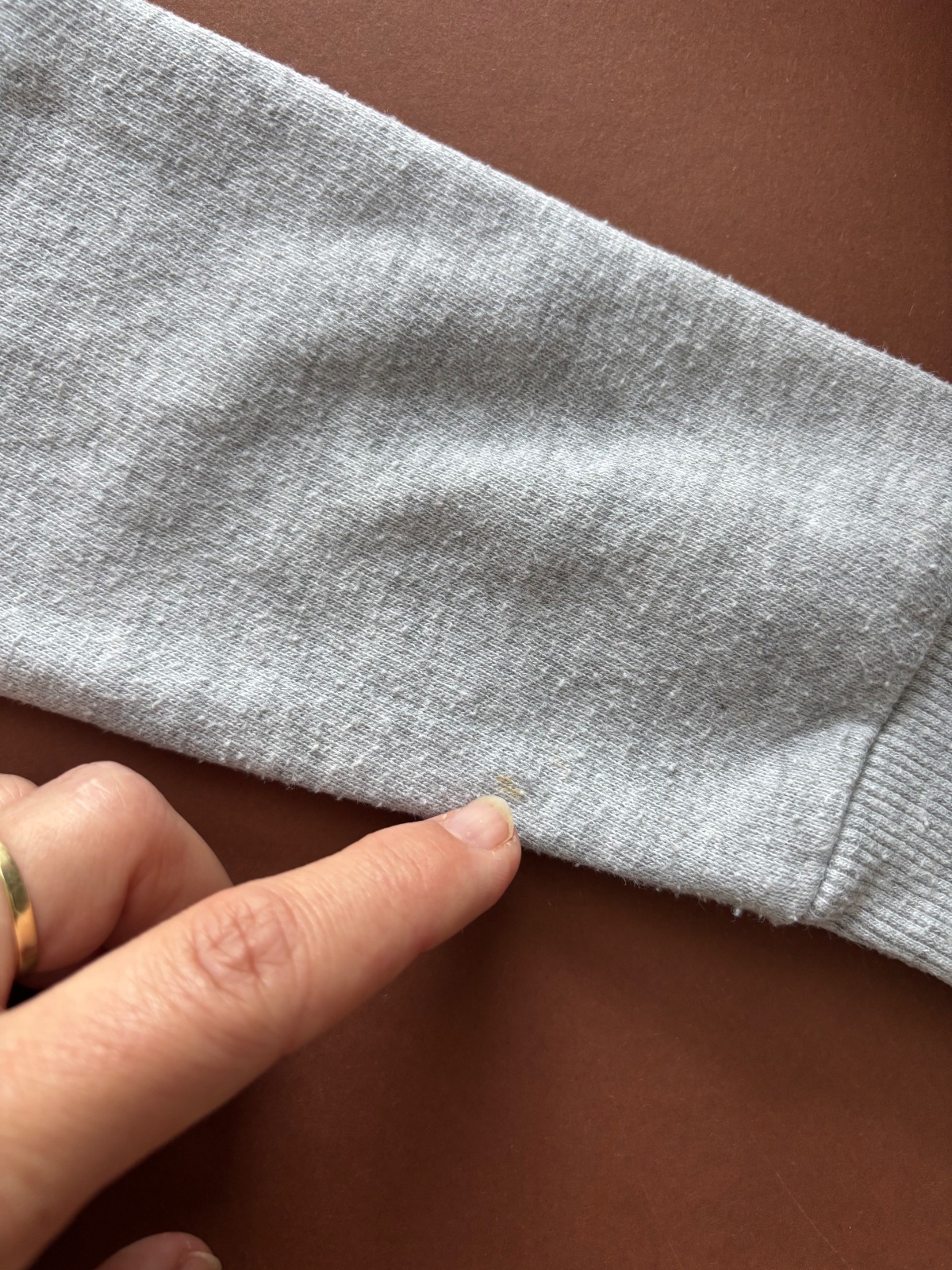 DOBRÝ STAV - žmolíky na lemech, spíš na donošení, na doma, výrznější žmolík....u takovéto stavu oblečeni je vždy zohlednění v ceně .