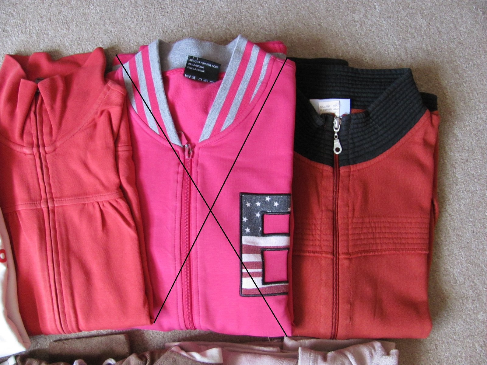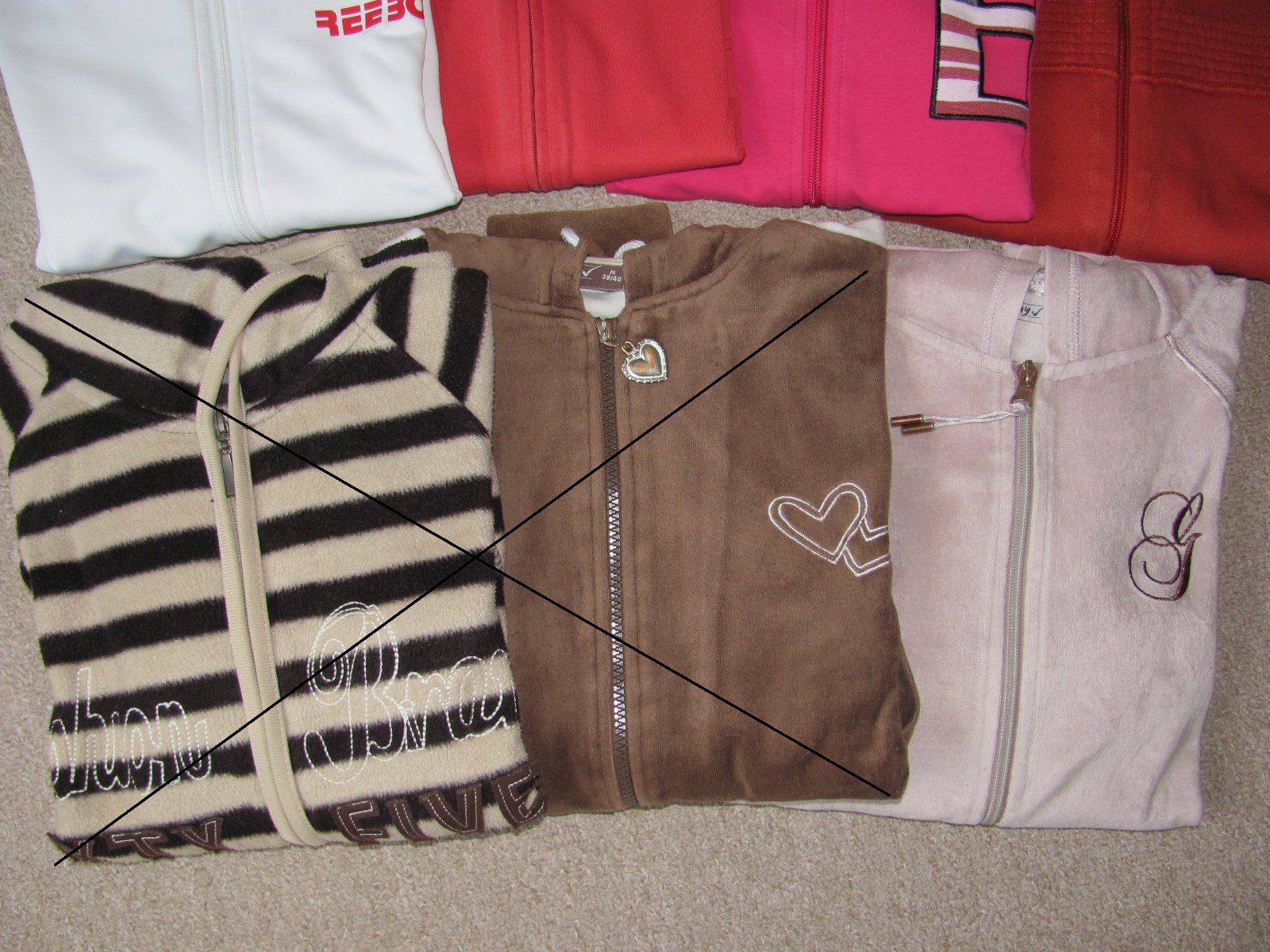 Mikiny na zip, 5 ks - 1 ks s kapucí, 4 ks bez. Velikost M/L.