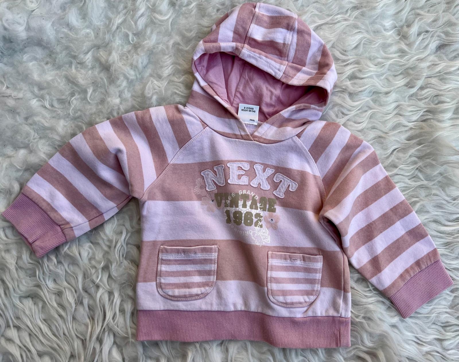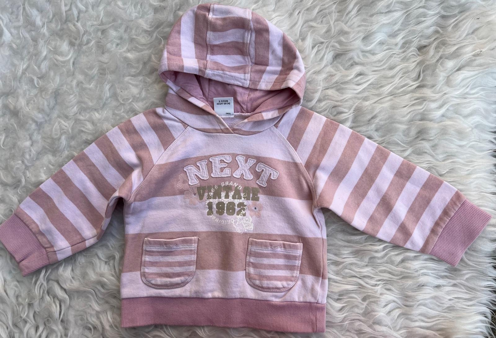 pekna mikinka od nextu vel.98, bila mikinka s kapuckou a ružovym napisem, hodi se ke všemu