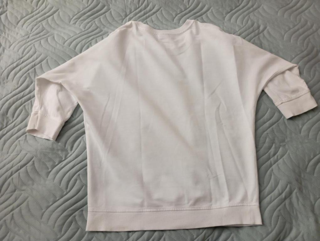 nošená, pěkná, bez vad, na jednom rukávu ozdobný volánek, délka 47, šířka 45, rukáv od ramene 52, Zásilkovna 80,- Balíkovna a PPL 65,-