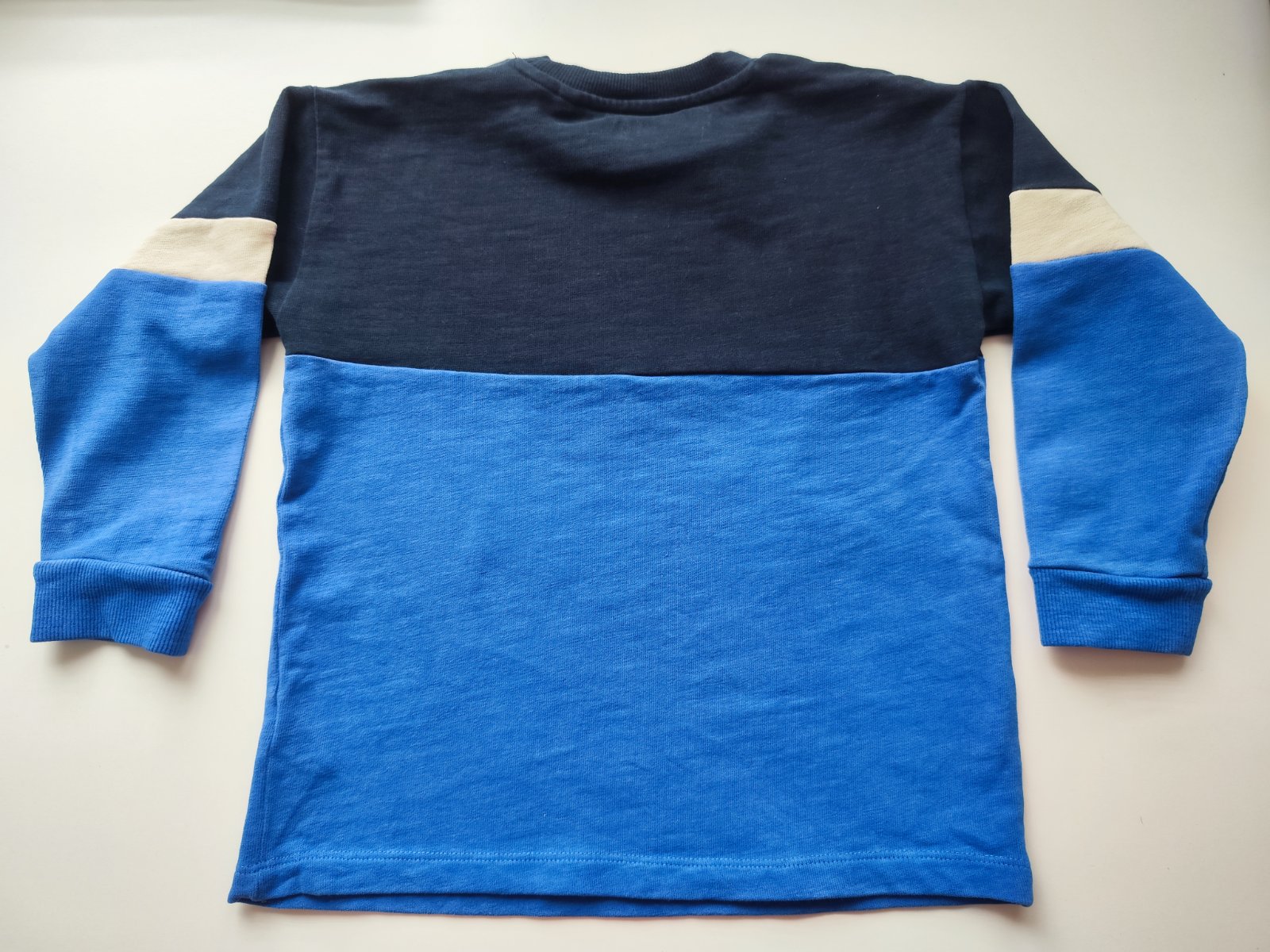 Prodám mikinu Next, velikost 116, rozměry – délka od ramen 46 cm; šířka v podpaží 38 cm; délka samotného rukávu 32, 5 cm; délka rukávu od krku 46 cm. Tato pohodlná mikina s dlouhým rukávem má barevné bloky – černá, modrá, bílá, má kulatý výstřih, žebrované lemy u krku a na rukávech, barvy již nejsou tak syté. Ideální do školky i na hřiště. Cena 50 Kč, v Brně možné osobní předání.
