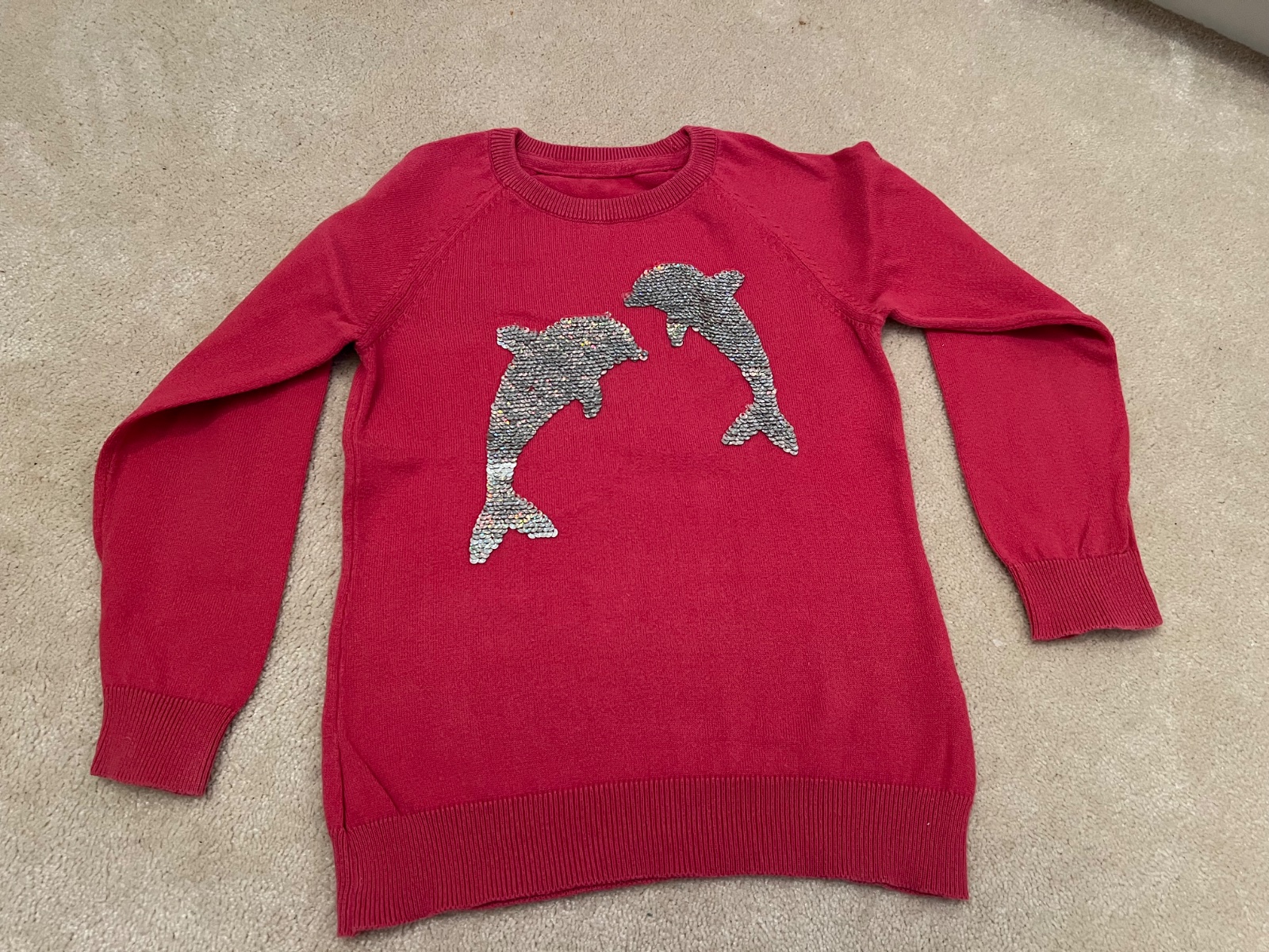 Prodám svetr Tchibo. Velikost 98/104 ale dcera nosila celkem dlouho. Je krásný obrázek měníci flitry.