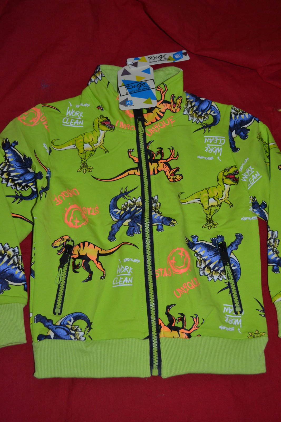 moderní kvalitní mikina Kugo s dinosaury,bavlna, na zip,kapsy,krásně sedí,oblíbený motiv,moc pěkné