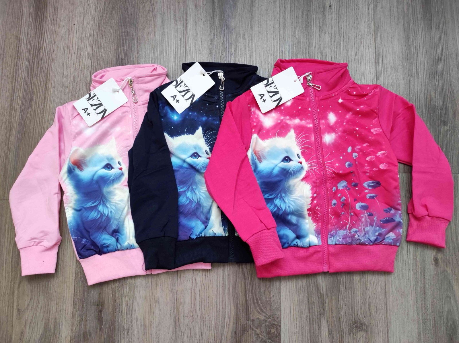 Slabá mikina na zip s obrázkem kočičky, zn. Sezon