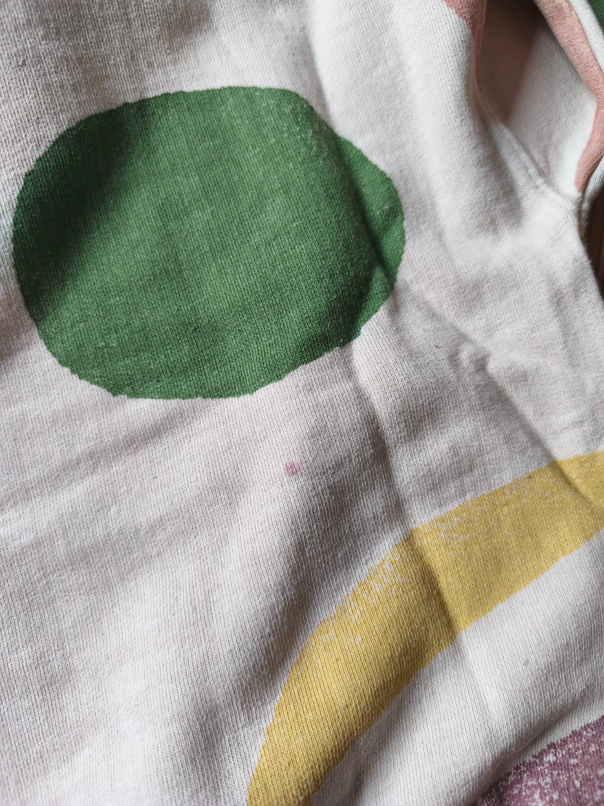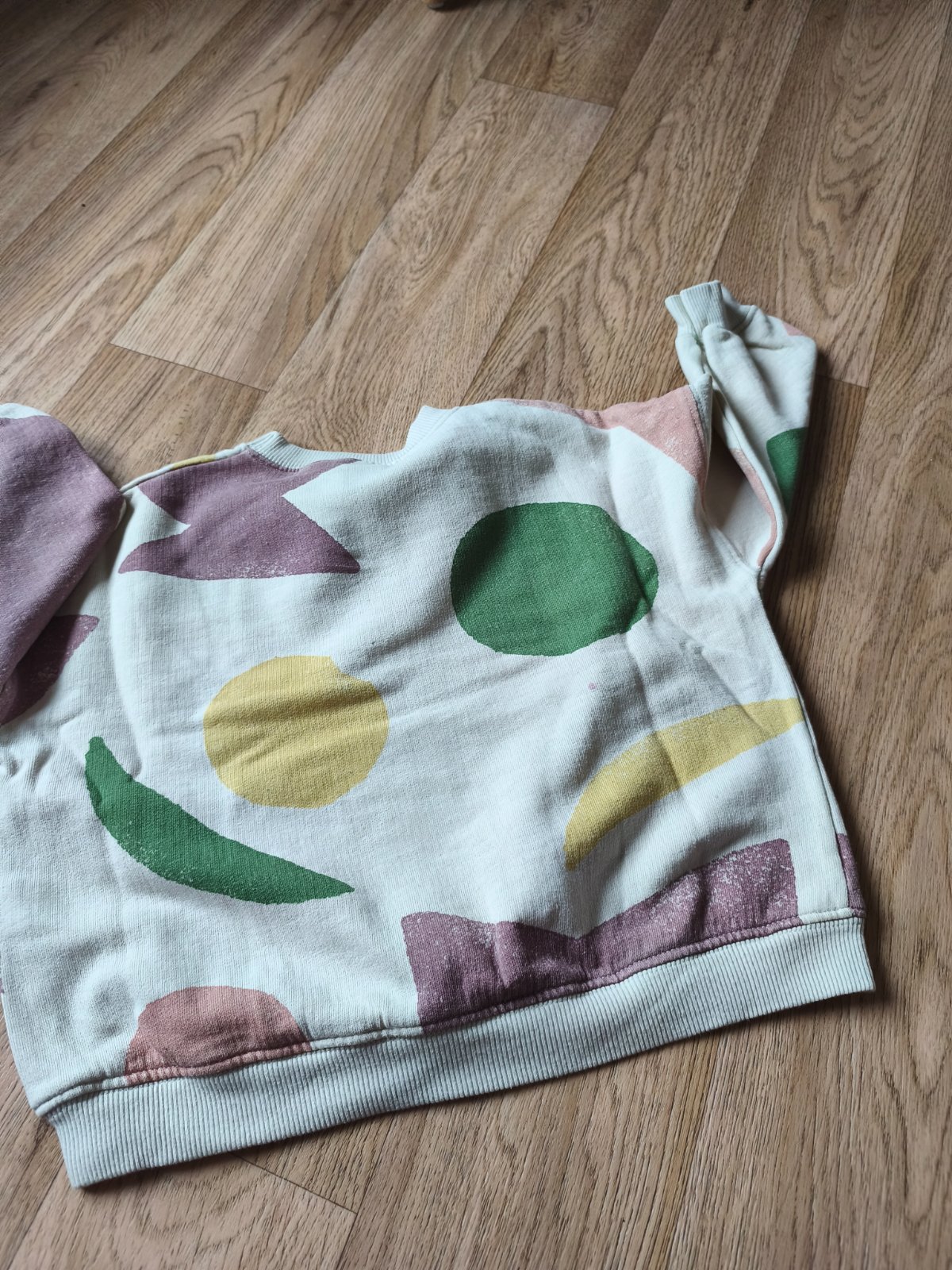 Mikina Zara, potisk originál šísovaný, vzadu fialová tečka. Běžné známky praní.