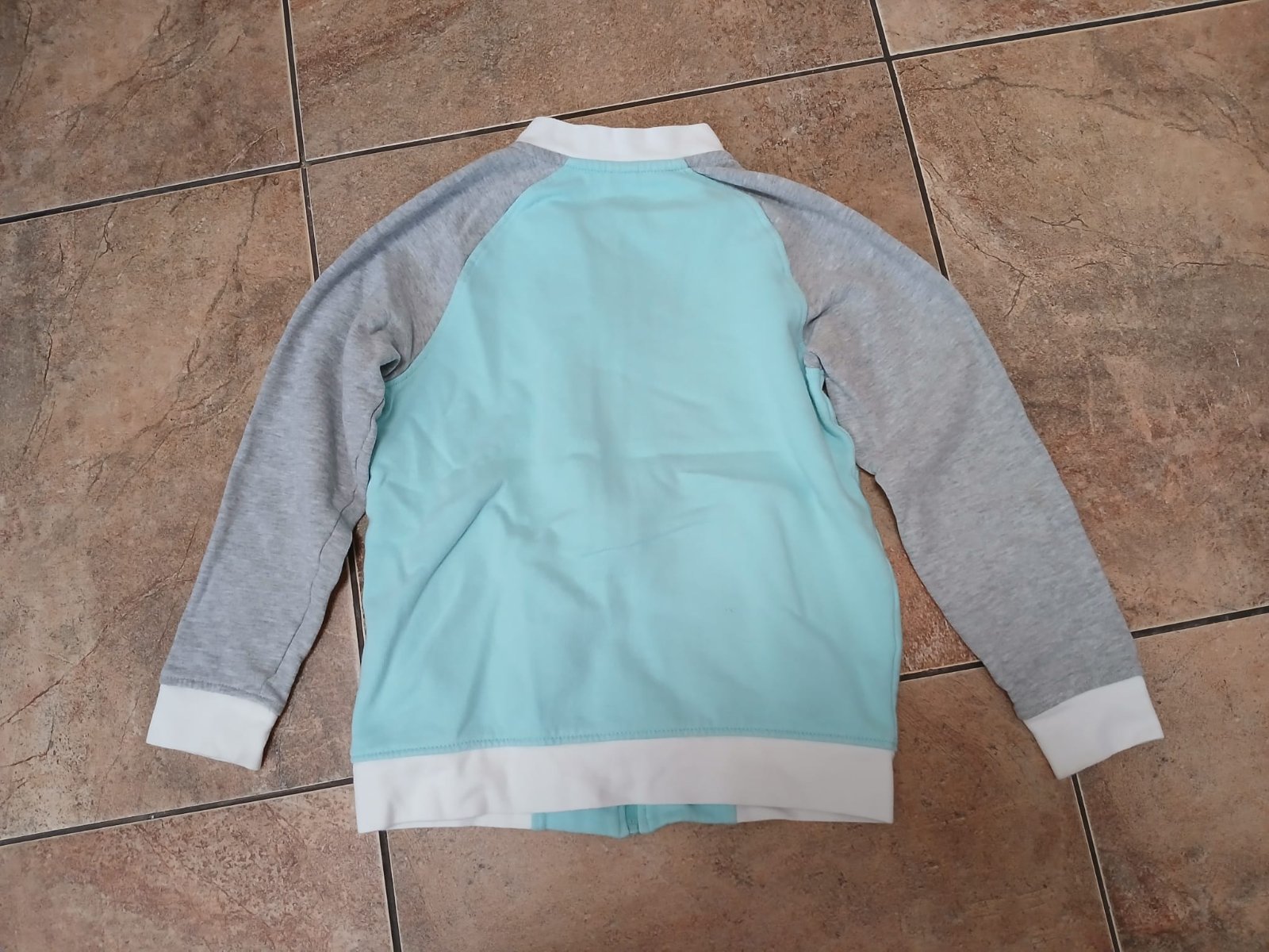 Krásná sametová mikinka vel. 8/9 - 128/134 Délka 45 cm rukáv od krku 56 cm U pravé kapsy jsou dvě ďupky, nejsou moc vidět, snad ještě půjdou vyprat. (viz. foto) Jinak bez vad + pošta