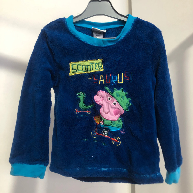 100% polyester, pěkná, velikost 3 - 4 roky, rukáv od krku 41 cm.