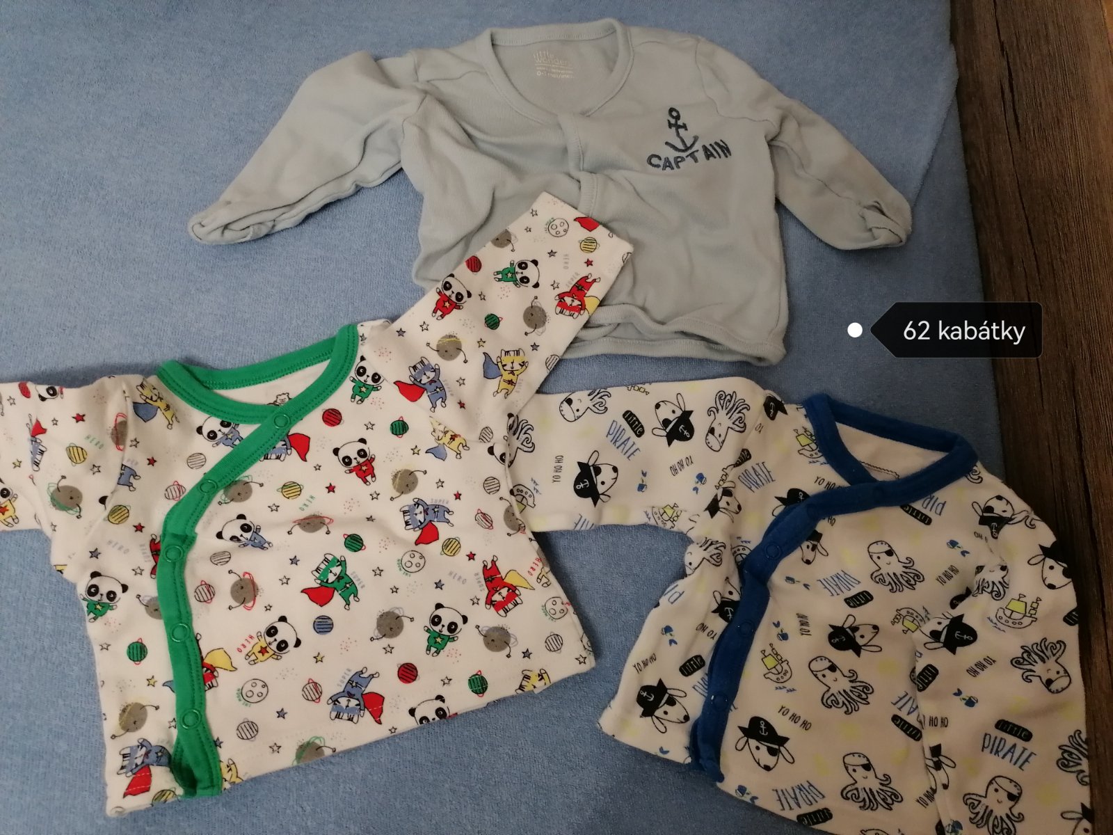 Prodám kojenecký lehký kabátky, velikost 62. Používané, bez flelů a děr.
