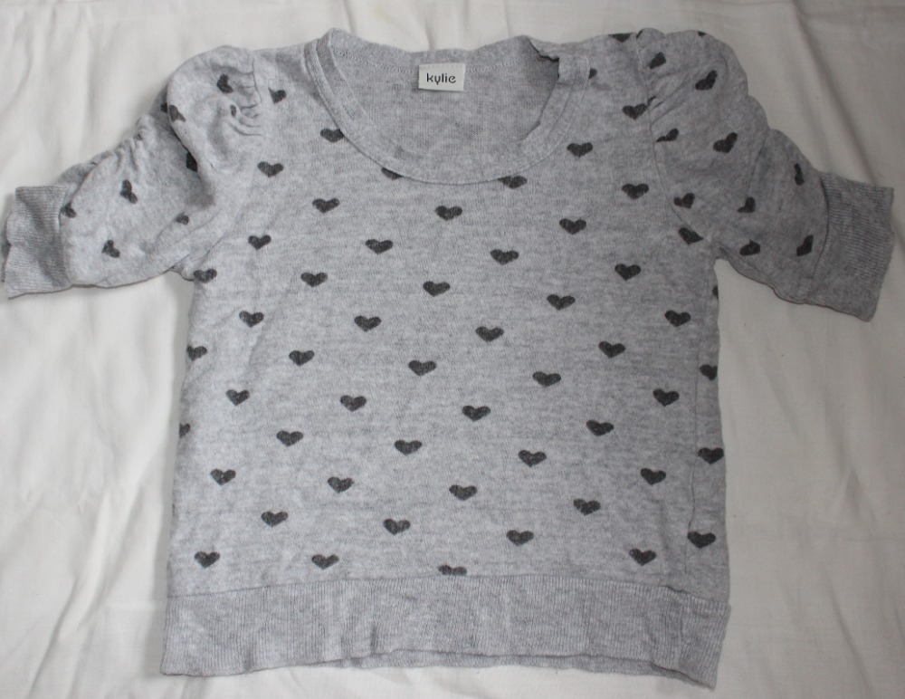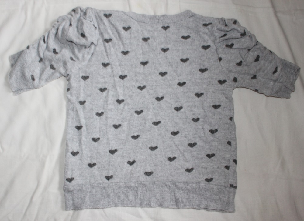 Po naší Amálce, ve velmi dobrém stavu, teplejší velmi příjemný, heboučký materiál, světle šedá barva+tmavě šedá srdíčka, zajímavě nabírané 3/4 rukávy.