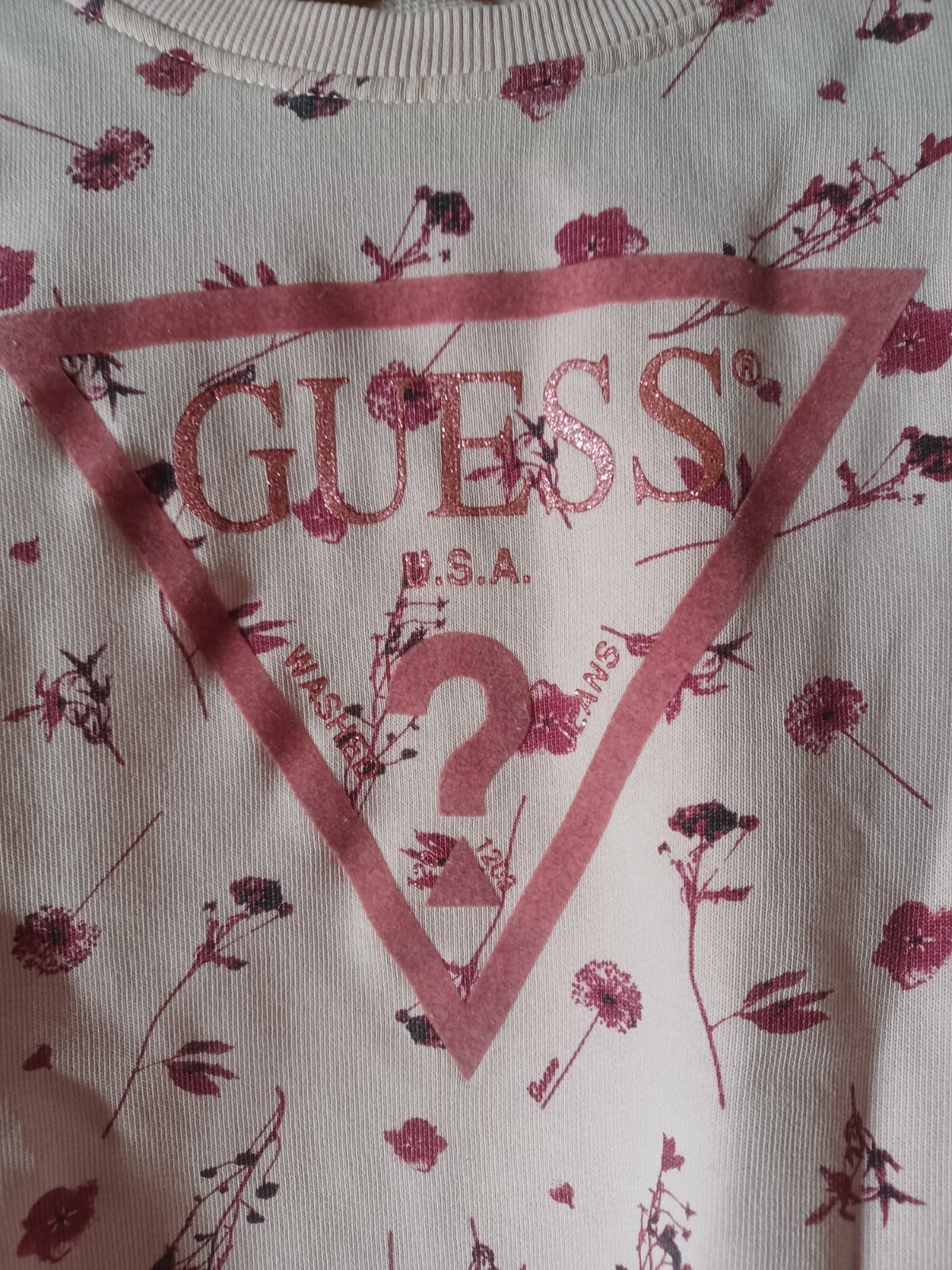 Krásná květinová mikina Guess, barva taková růžovo - lososová. Běžné známky praní, málo nošená, moc pěkná.