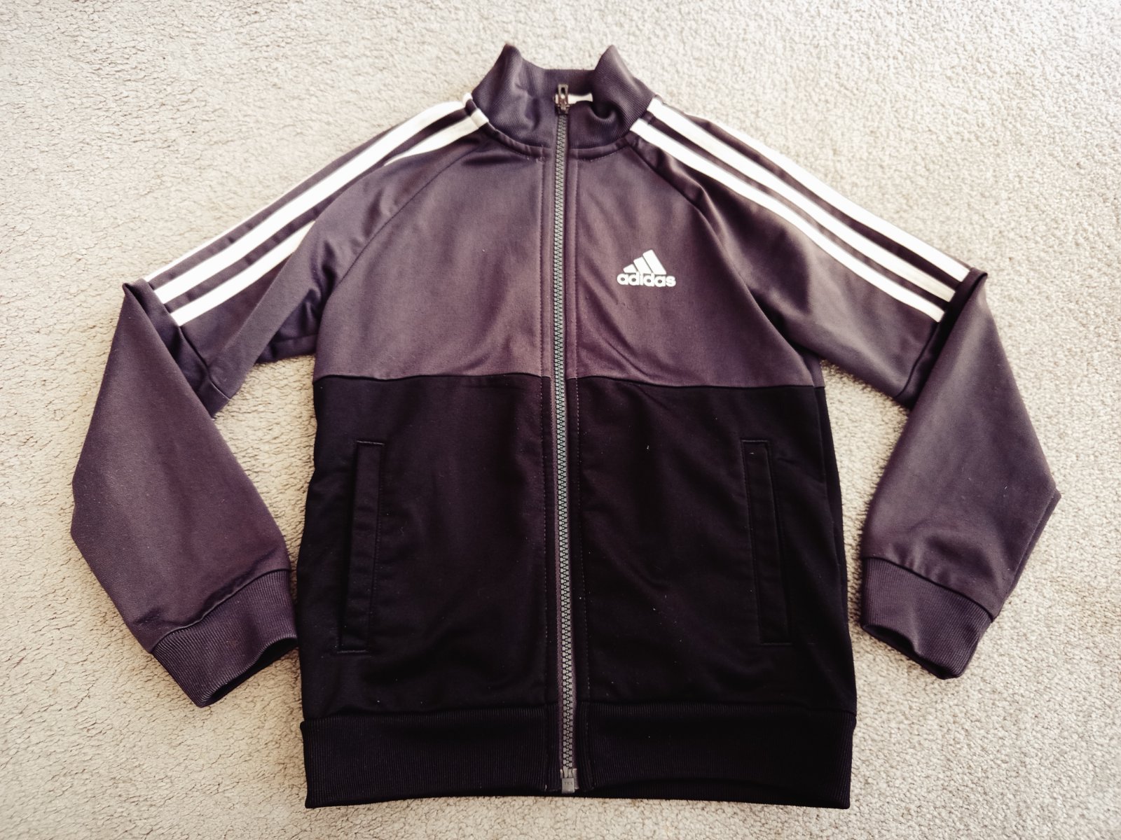Adidas mikina vel. 128, bez vad, světlý flek na mikině není, chyba fotky, d 50cm, rk 56cm, š 38cm, 240308